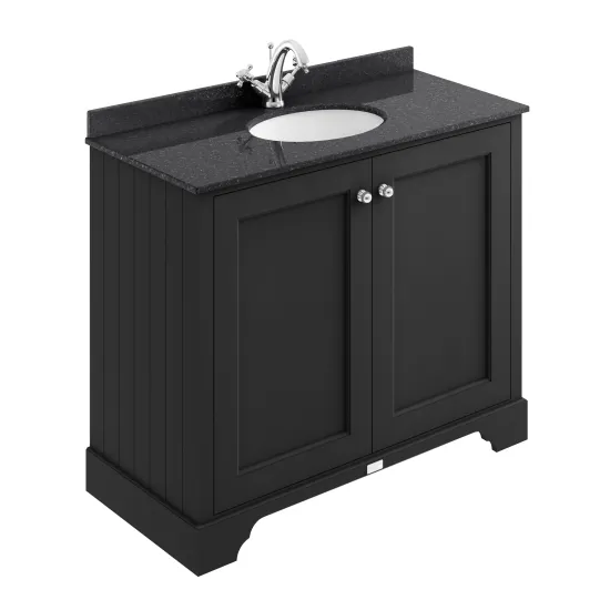 Bayswater 1000mm 2-Door Cabinet With 1 Tap Hole Black Marble Top Basin - Matt Black