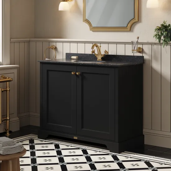 This striking black cabinet creates a unique centre piece to any classic themed bathroom