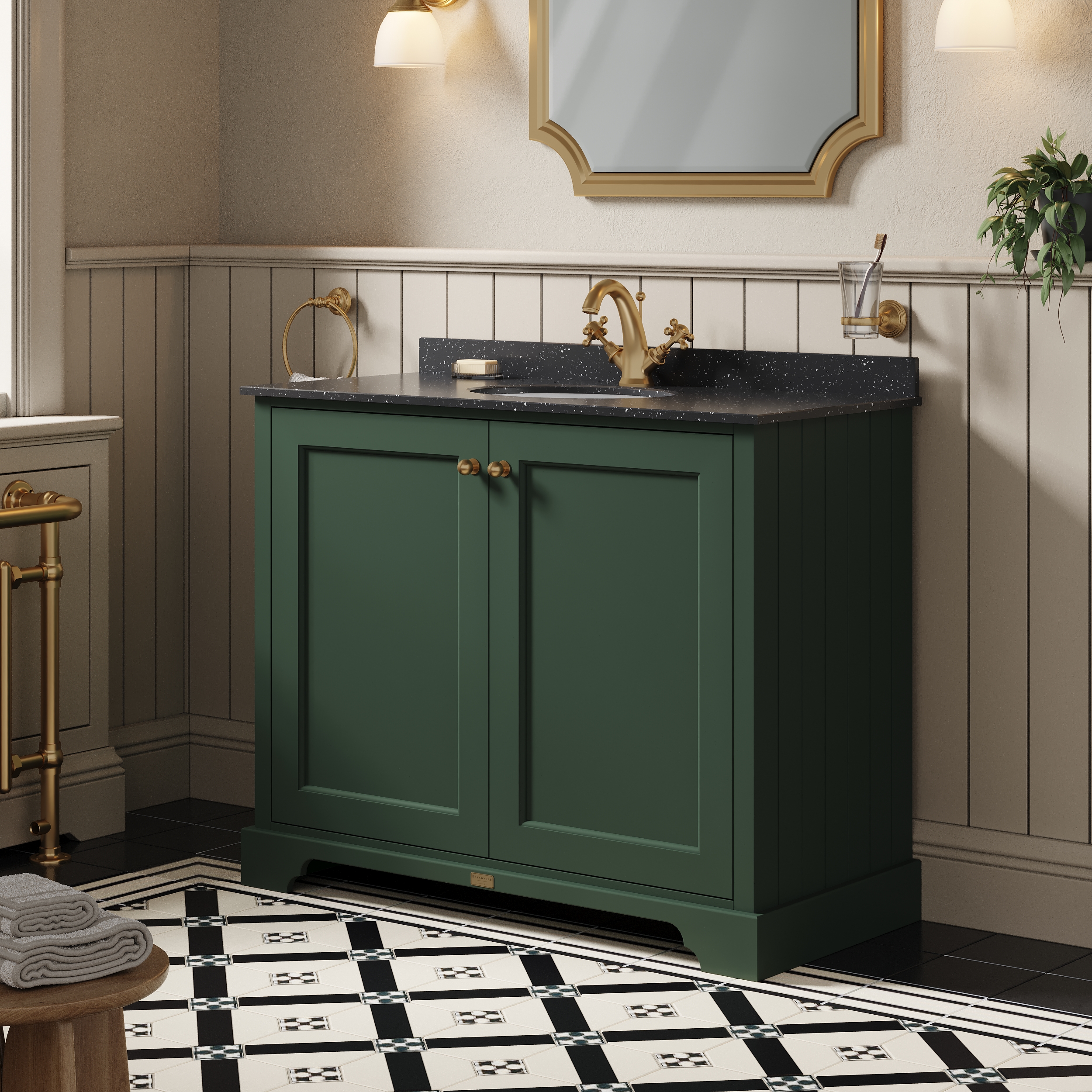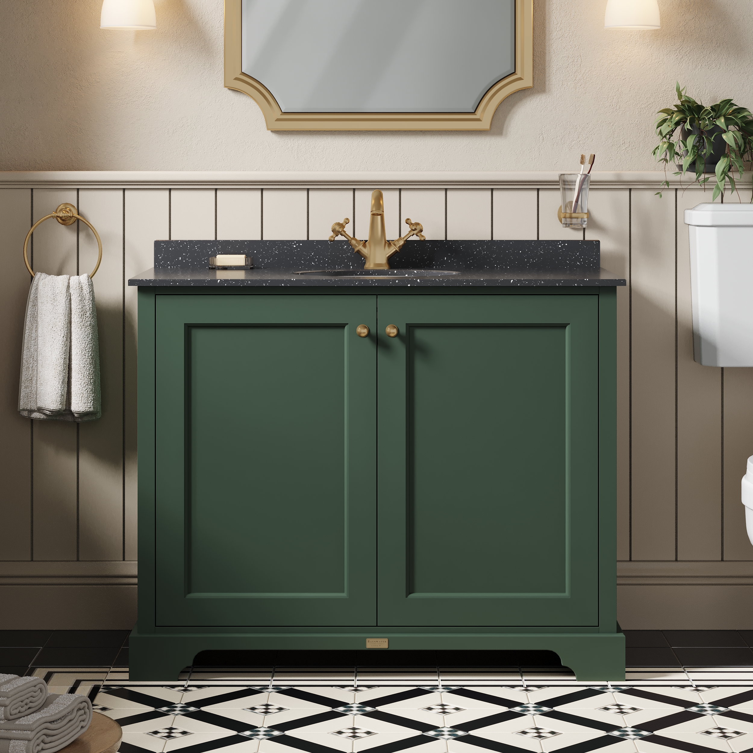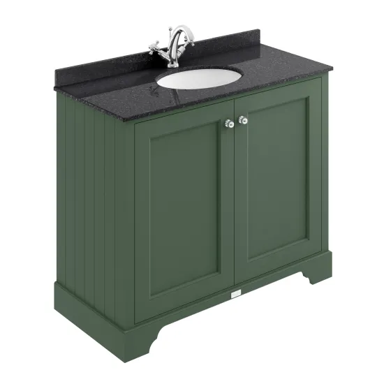 Bayswater 1000mm 2-Door Cabinet With 1 Tap Hole Black Marble Top Basin - Hunter Green