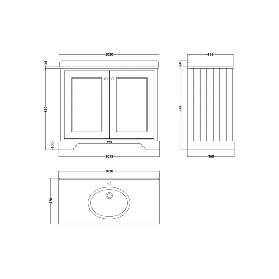 Bayswater 1000mm 2-Door Cabinet with 1 Tap Hole Black Marble Top Basin