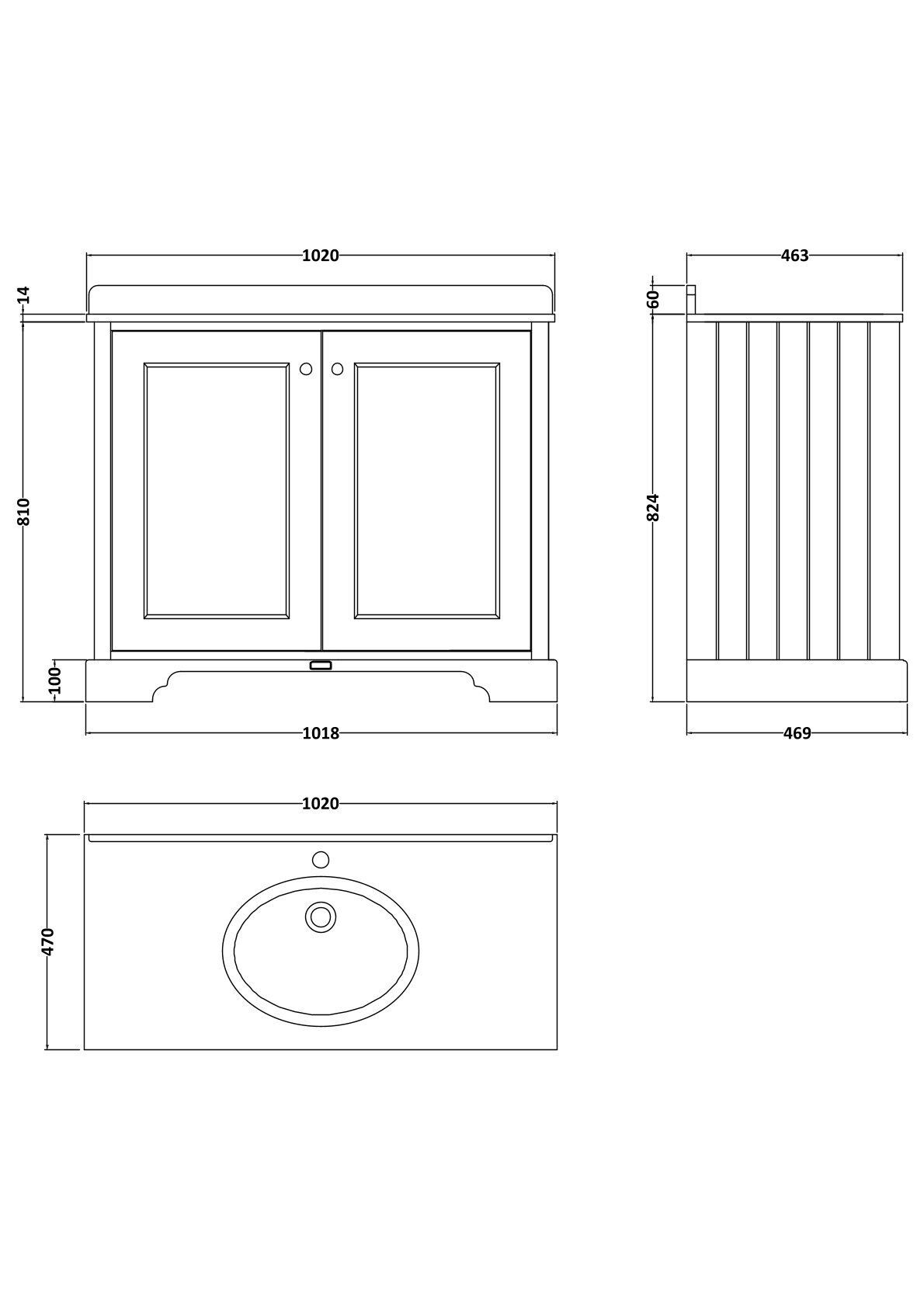 Bayswater 1000mm 2-Door Cabinet with 1 Tap Hole Black Marble Top Basin