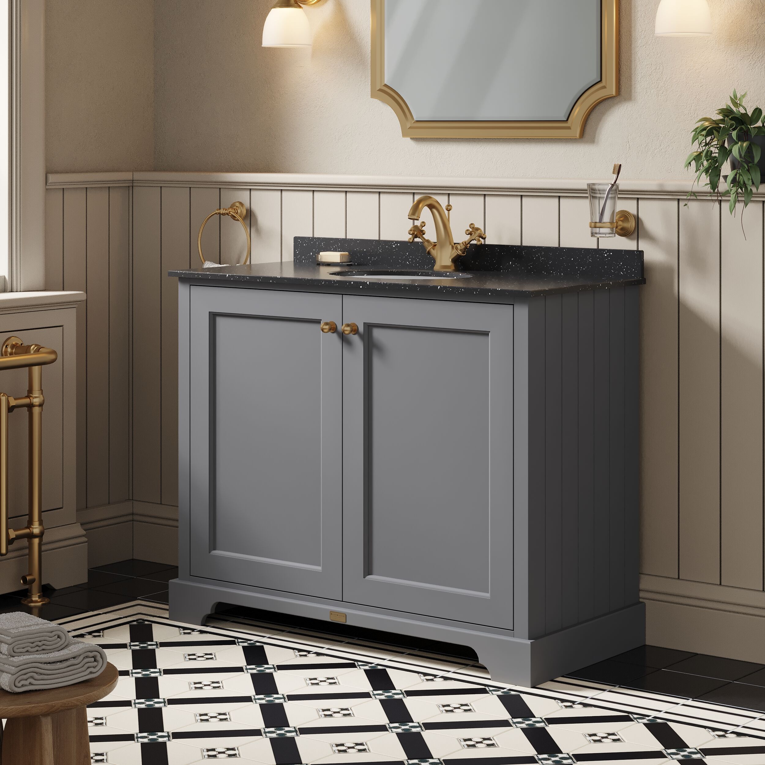 Bayswater 1000mm 2-Door Cabinet With 1 Tap Hole Black Marble Top Basin - Plummett Grey