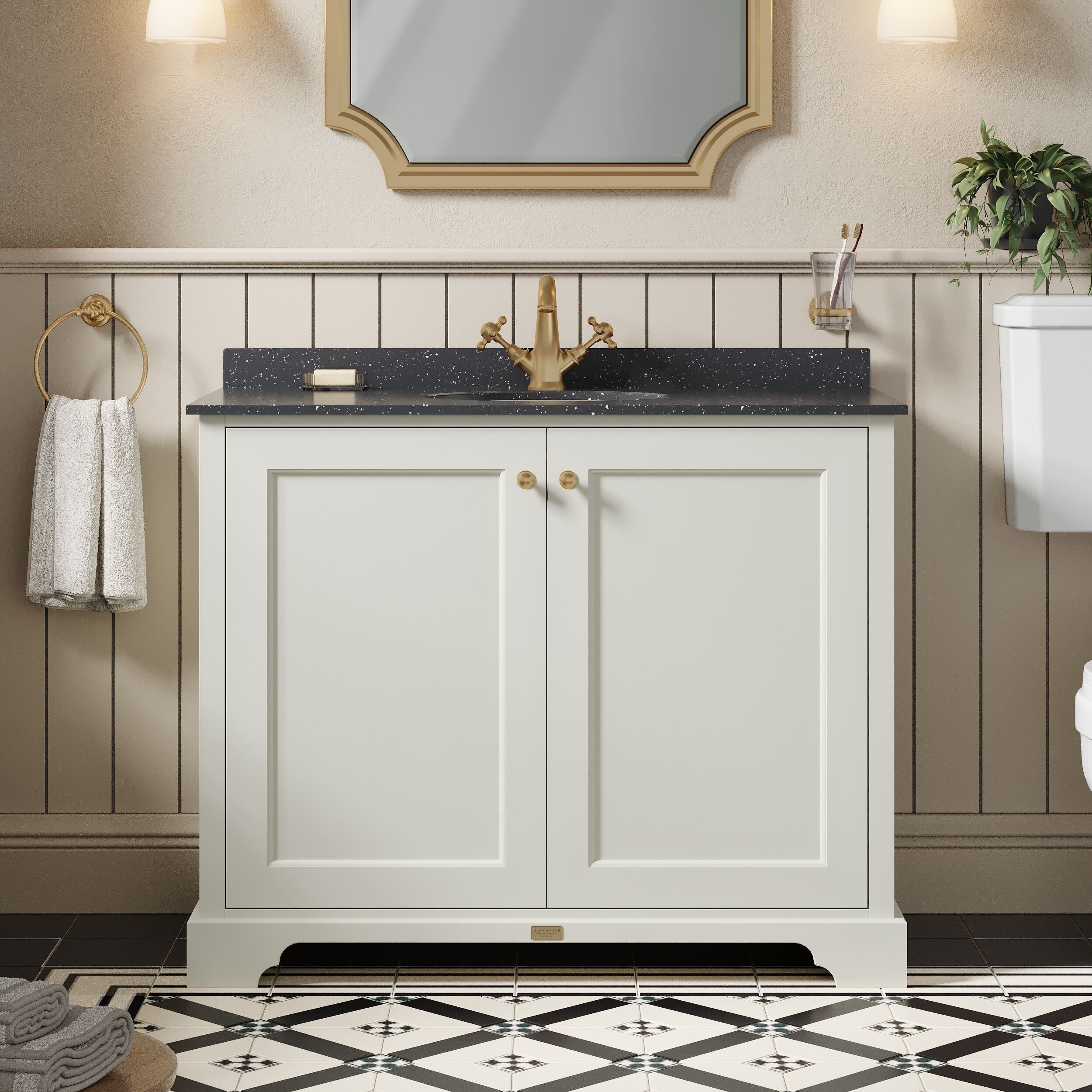 Bayswater 1000mm 2-Door Cabinet with 1 Tap Hole Black Marble Top Basin