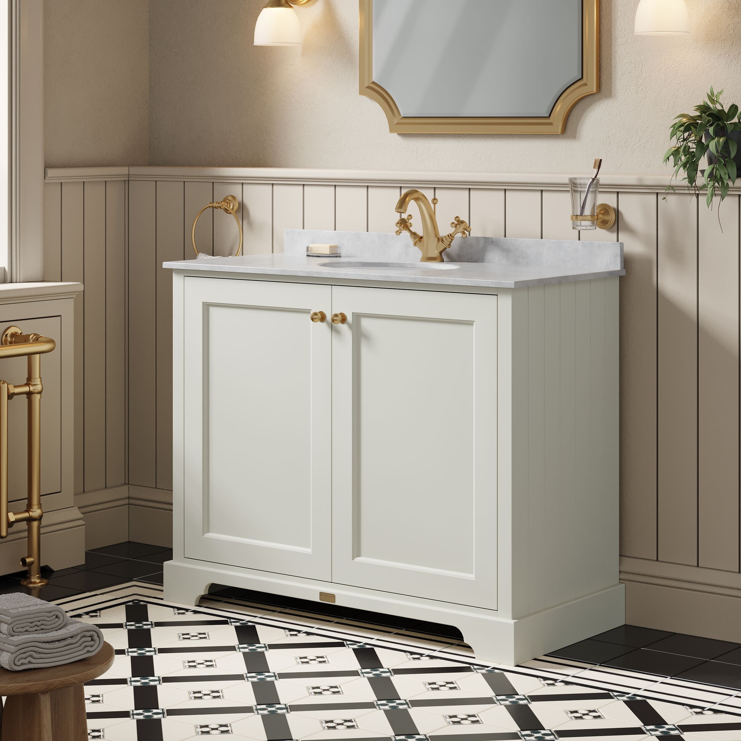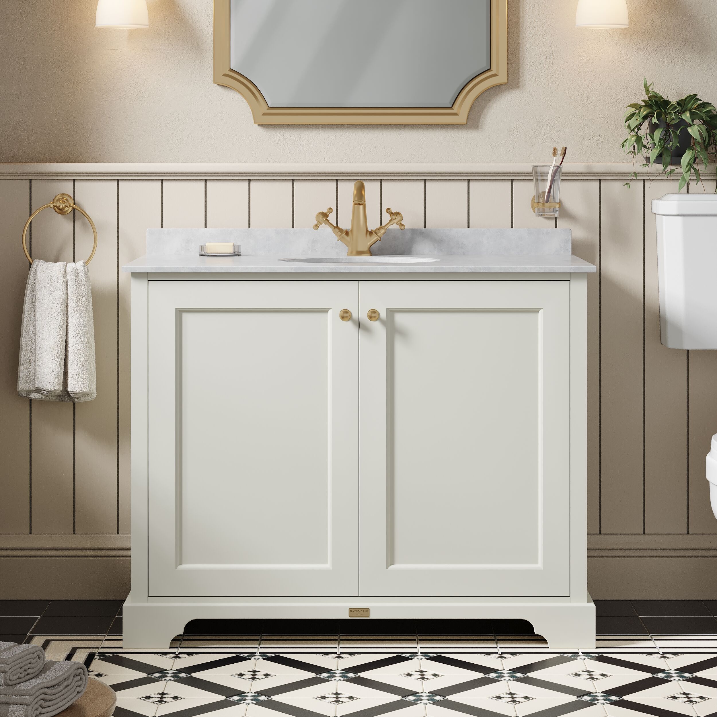 Bayswater 1000mm 2-Door Cabinet with 1 Tap Hole Grey Marble Top Basin
