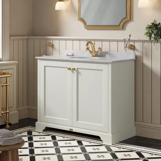 Bayswater 1000mm 2-Door Cabinet With 1 Tap Hole Grey Marble Top Basin - Pointing White