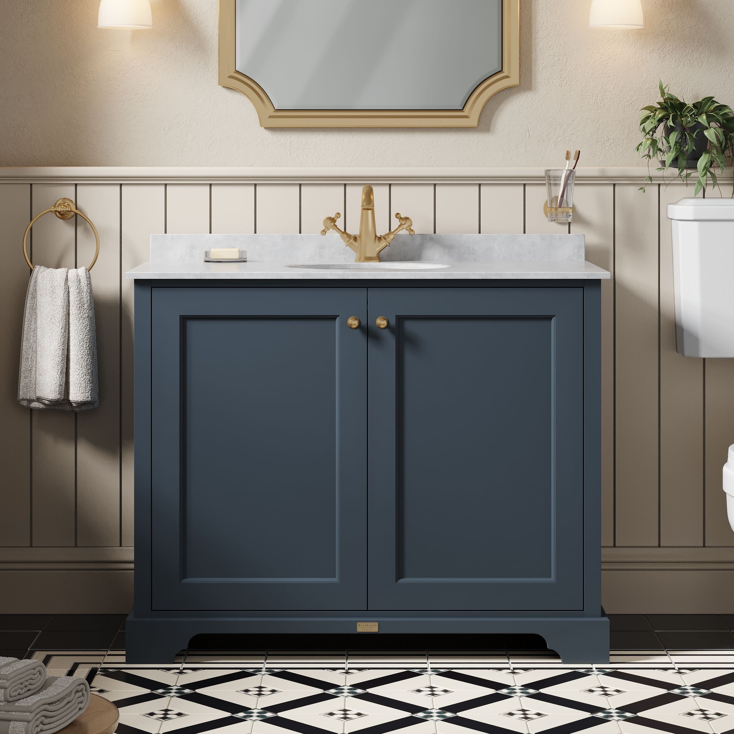 Bayswater 1000mm 2-Door Cabinet With 1 Tap Hole Grey Marble Top Basin - Stiffkey Blue