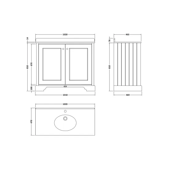 Bayswater 1000mm 2-Door Cabinet with 1 Tap Hole Grey Marble Top Basin