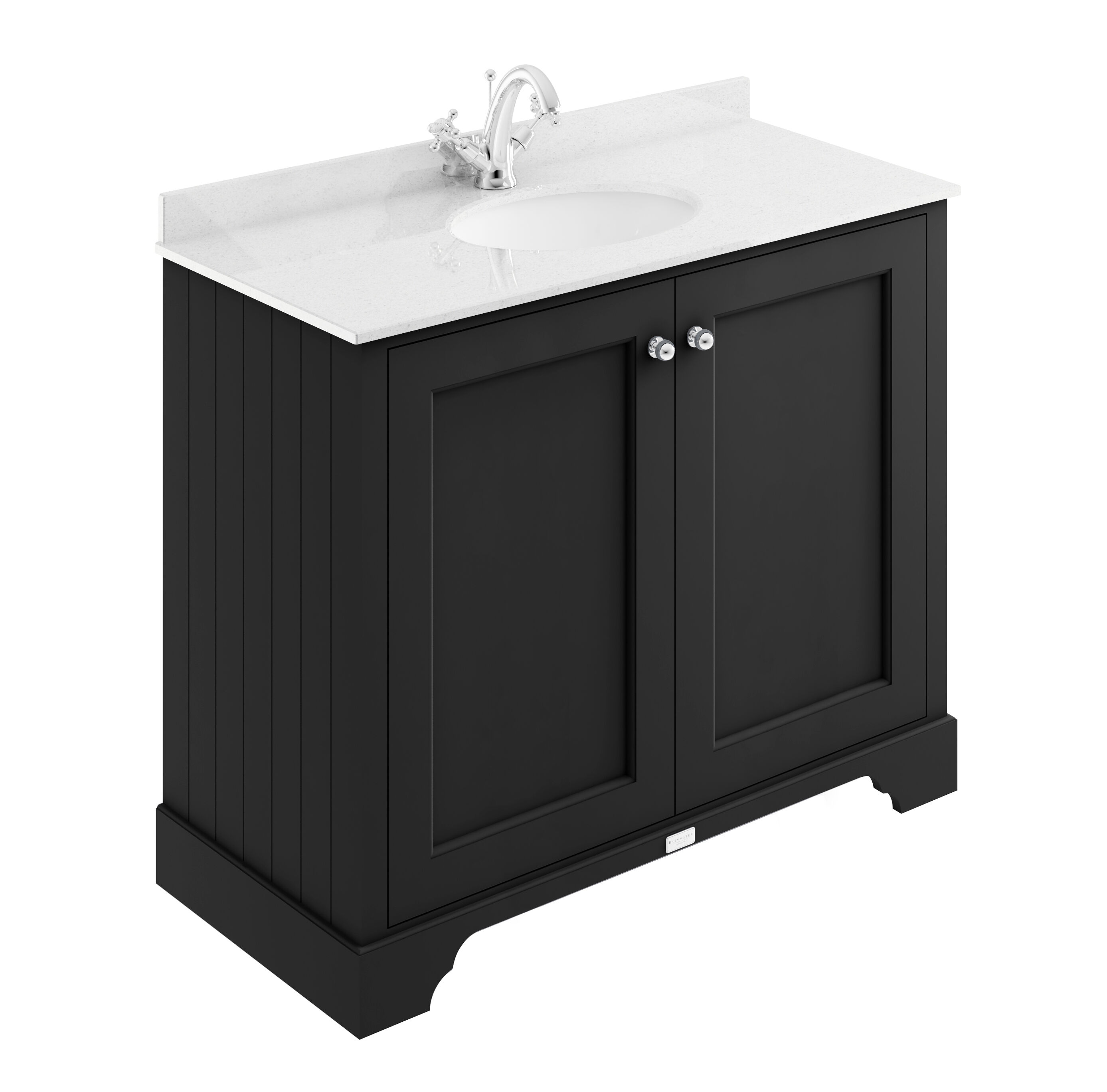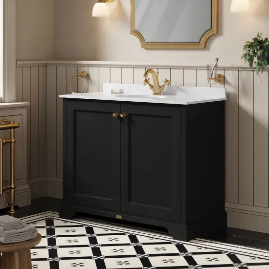 Bayswater 1000mm 2-Door Cabinet With 1 Tap Hole White Marble Top Basin - Matt Black