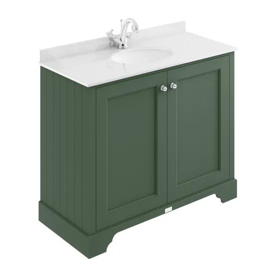 Bayswater 1000mm 2-Door Cabinet With 1 Tap Hole White Marble Top Basin - Hunter Green