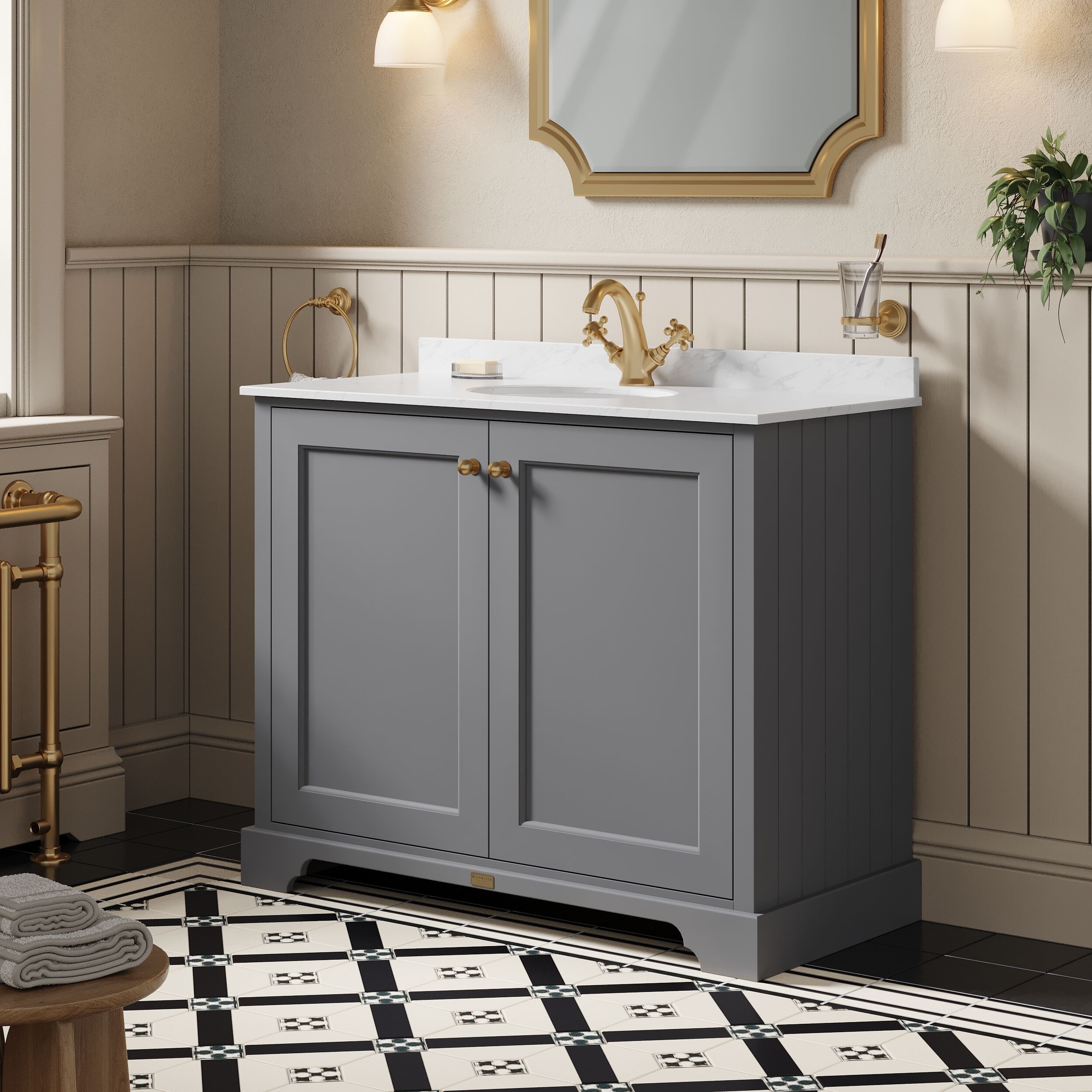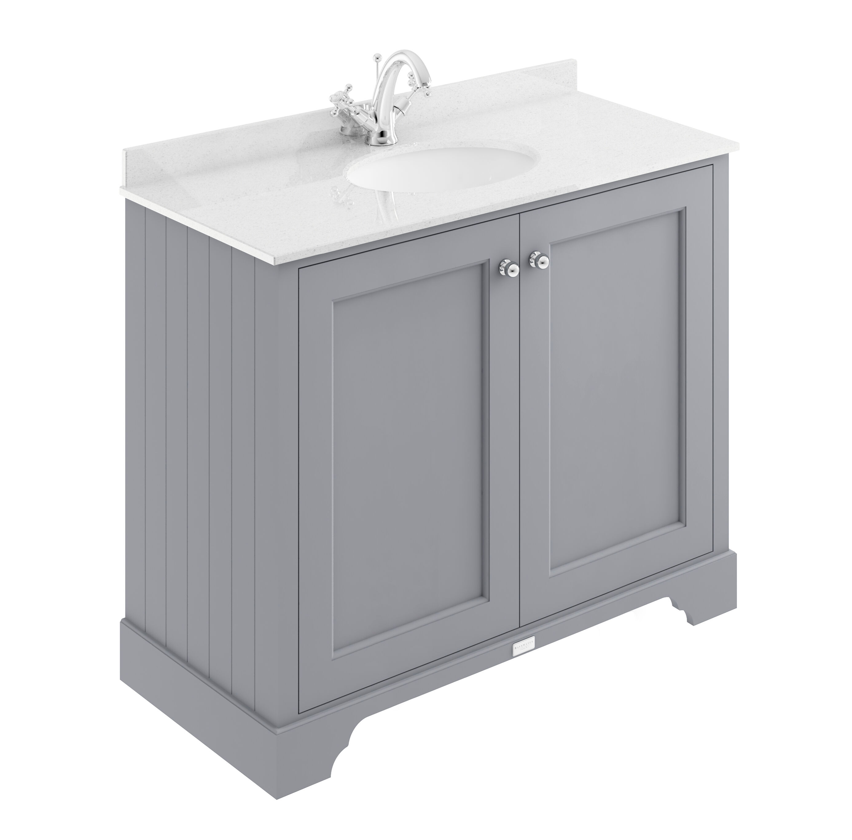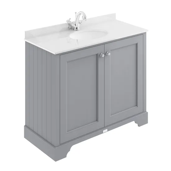Bayswater 1000mm 2-Door Cabinet With 1 Tap Hole White Marble Top Basin - Plummett Grey