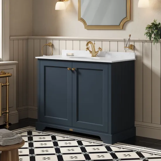 Bayswater 1000mm 2-Door Cabinet With 1 Tap Hole White Marble Top Basin - Stiffkey Blue