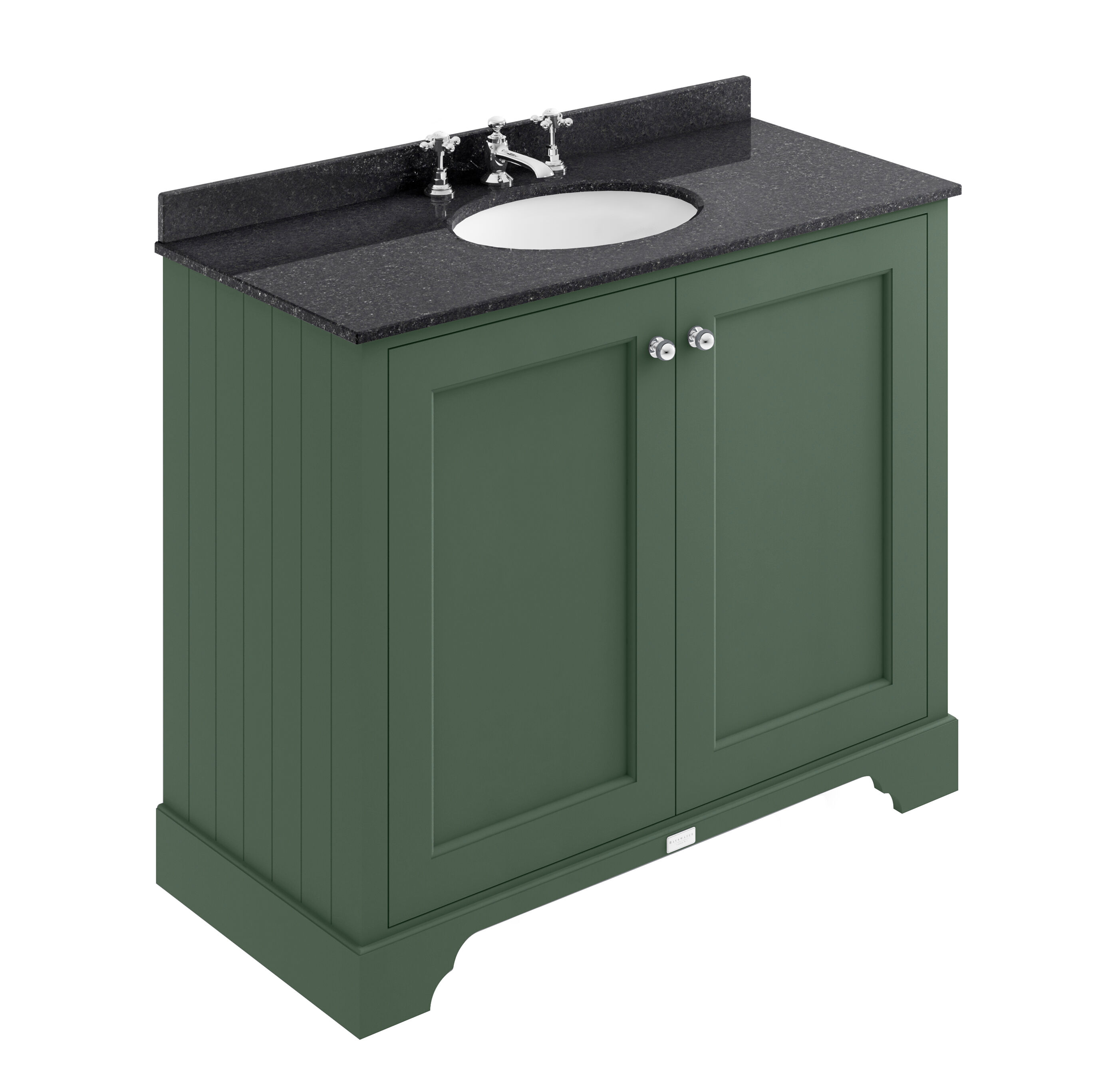 Bayswater 1000mm 2-Door Cab With 3 Tap Hole Black Marble Top Basin - Hunter Green