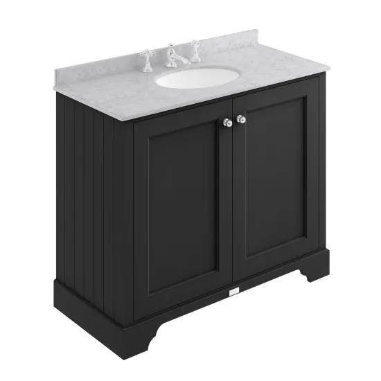 Bayswater 1000mm 2-Door Cab With 3 Tap Hole Grey Marble Top Basin - Matt Black