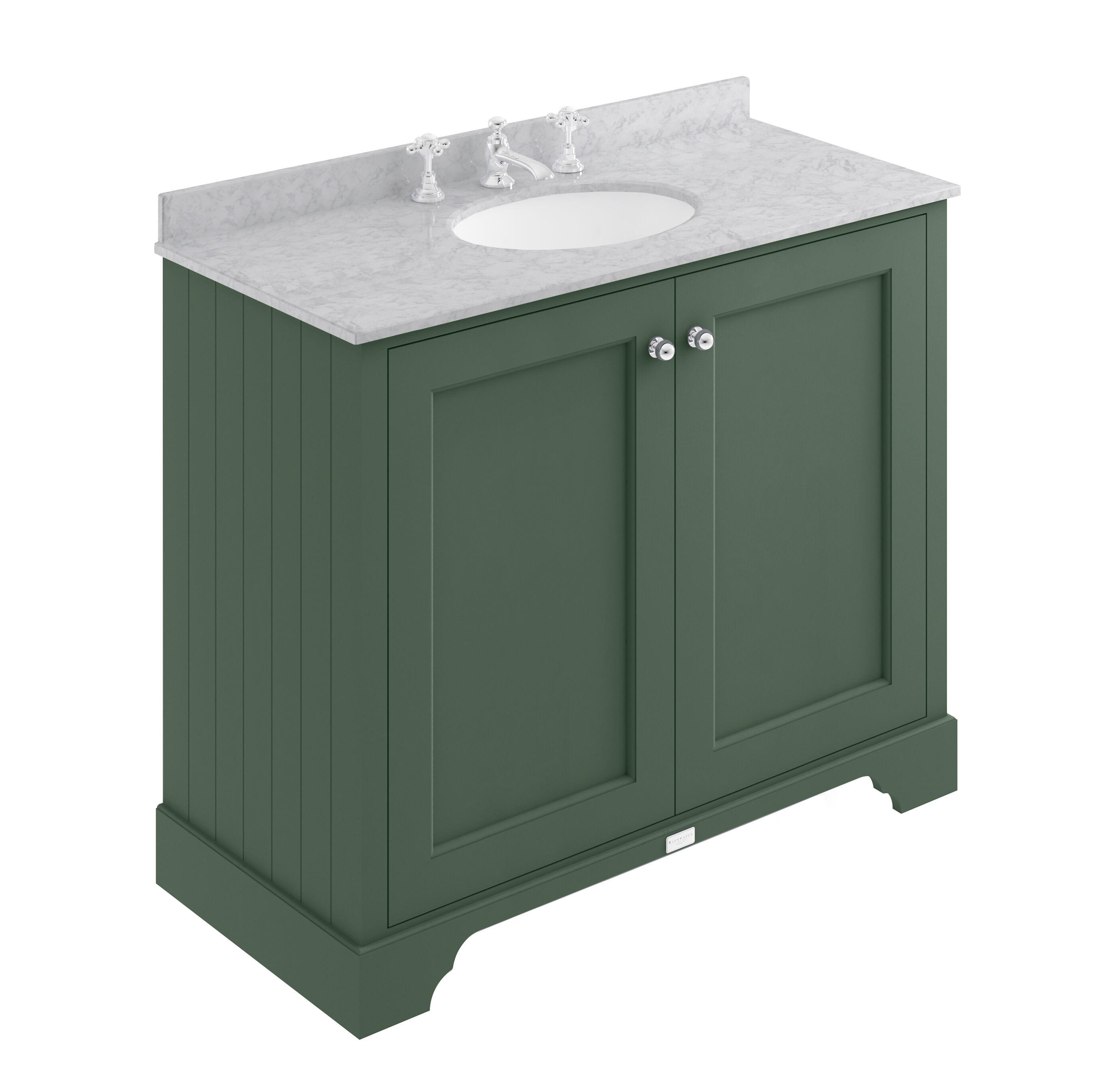 Bayswater 1000mm 2-Door Cab With 3 Tap Hole Grey Marble Top Basin - Hunter Green