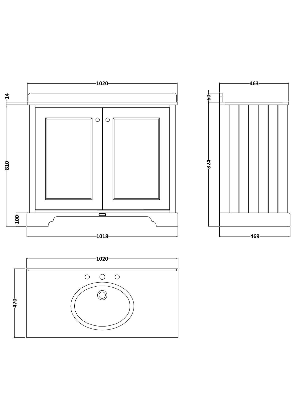 Supplied with a traditional and elegant Bayswater basin, predrilled with 3 tap holes