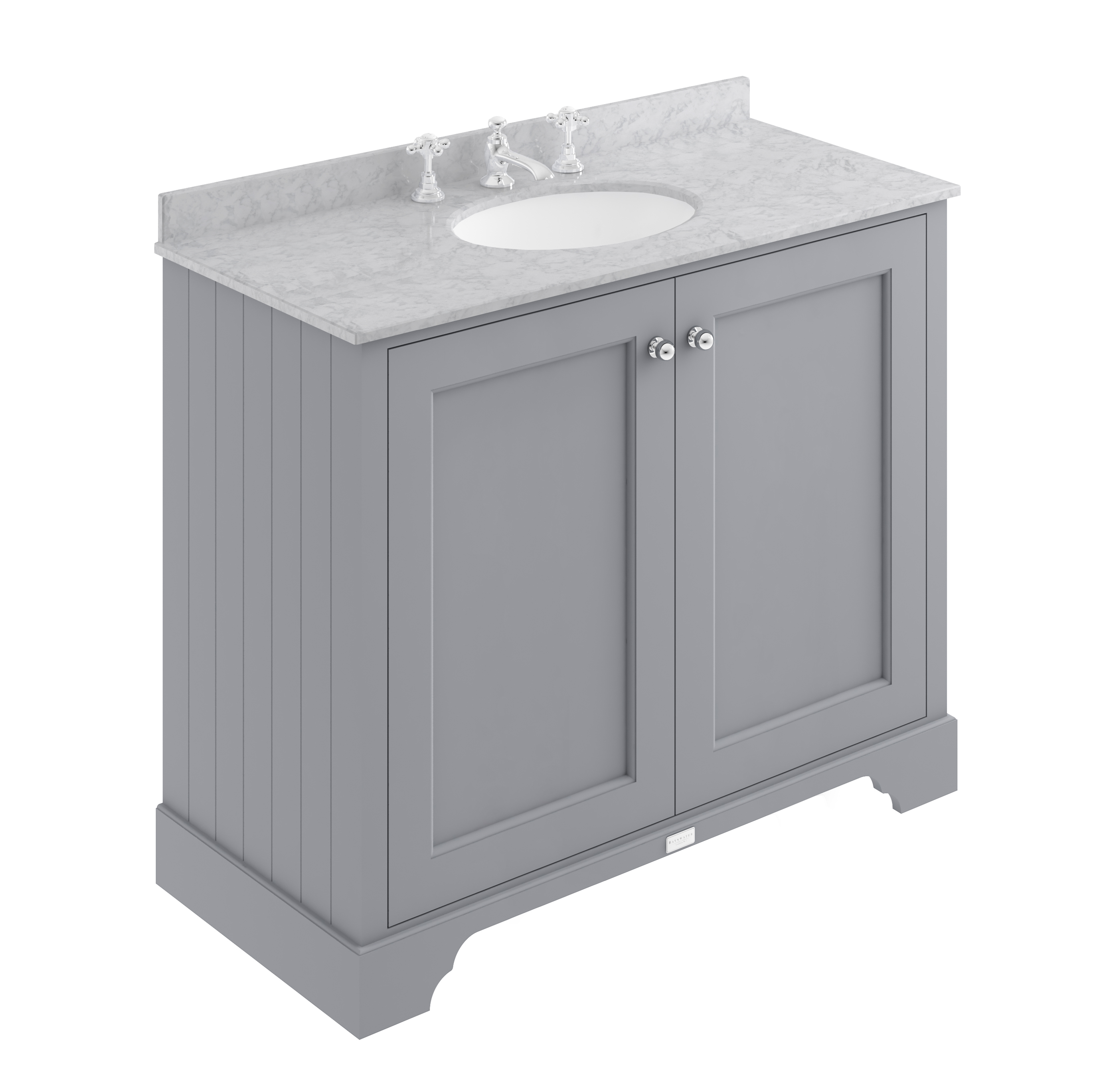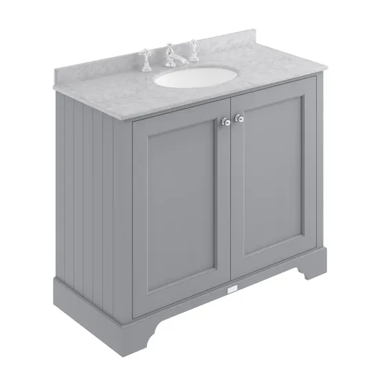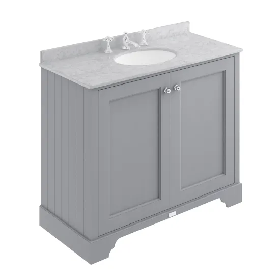 Bayswater 1000mm 2-Door Cab With 3 Tap Hole Grey Marble Top Basin - Plummett Grey