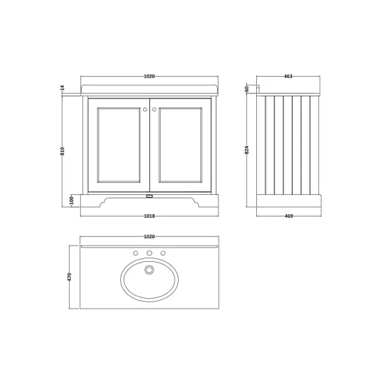 Supplied with a traditional and elegant Bayswater basin, predrilled with 3 tap holes
