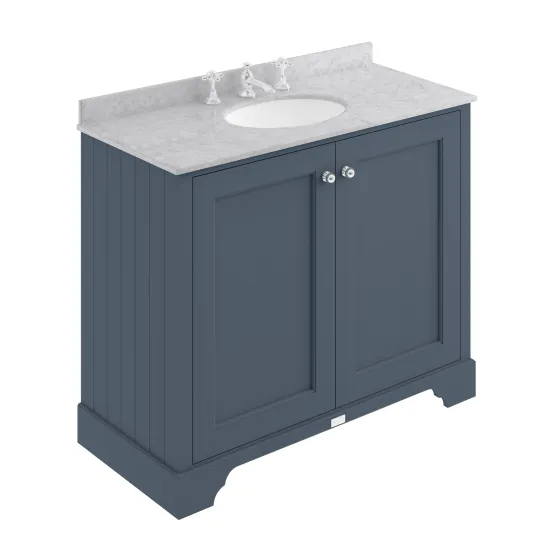 Bayswater 1000mm 2-Door Cab With 3 Tap Hole Grey Marble Top Basin - Stiffkey Blue