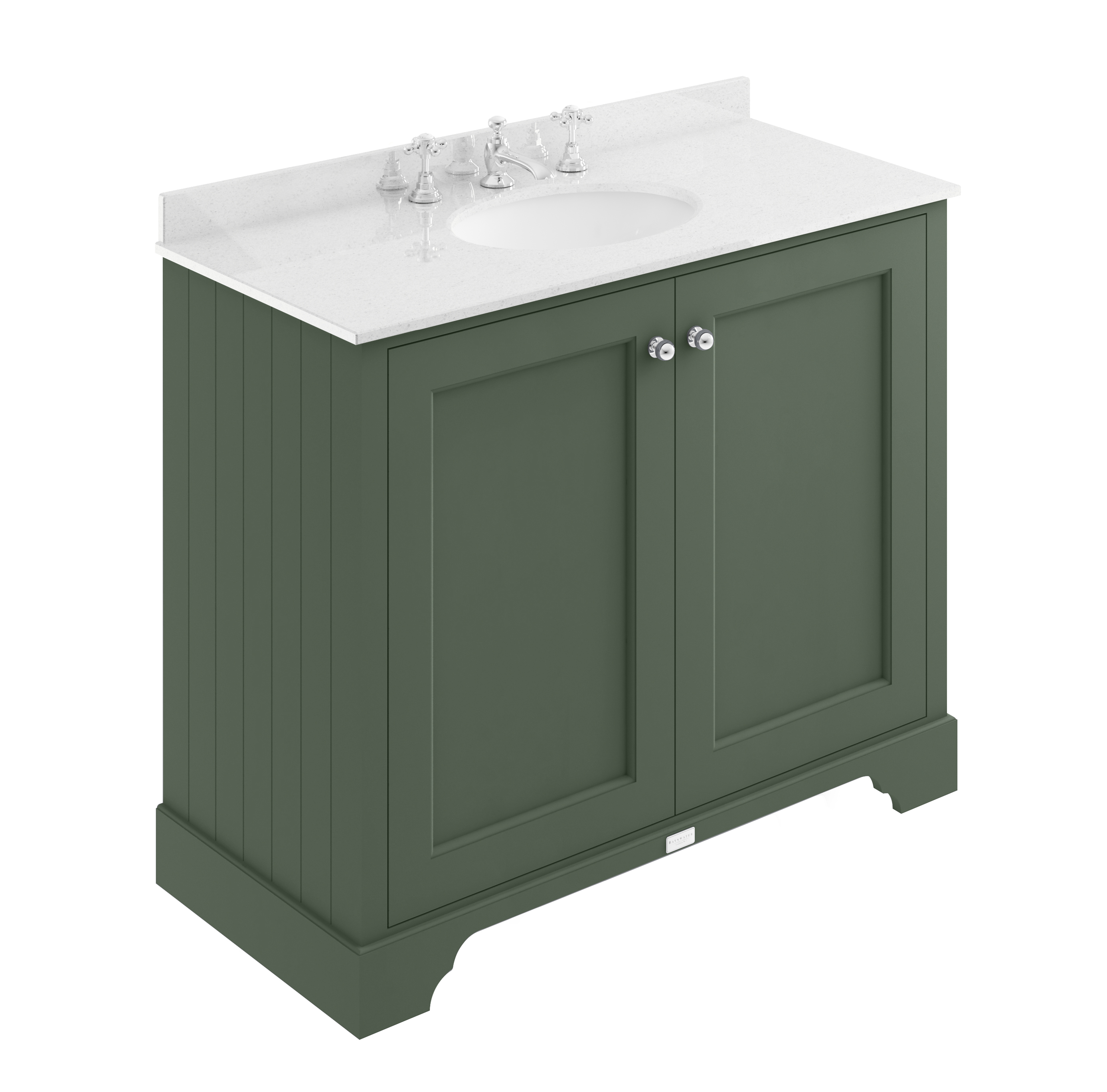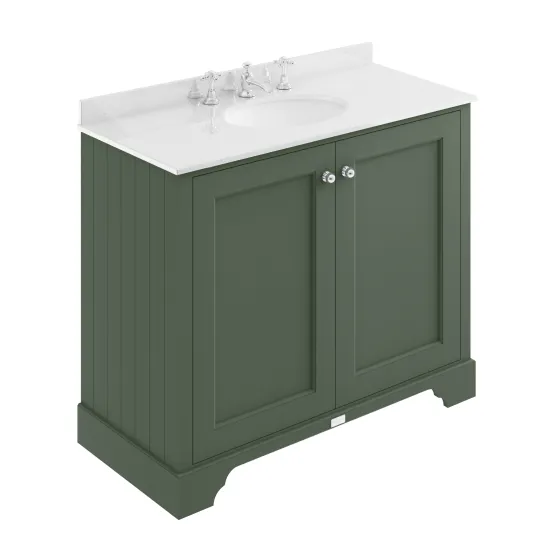 Bayswater 1000mm 2-Door Cab With 3 Tap Hole White Marble Top Basin - Hunter Green
