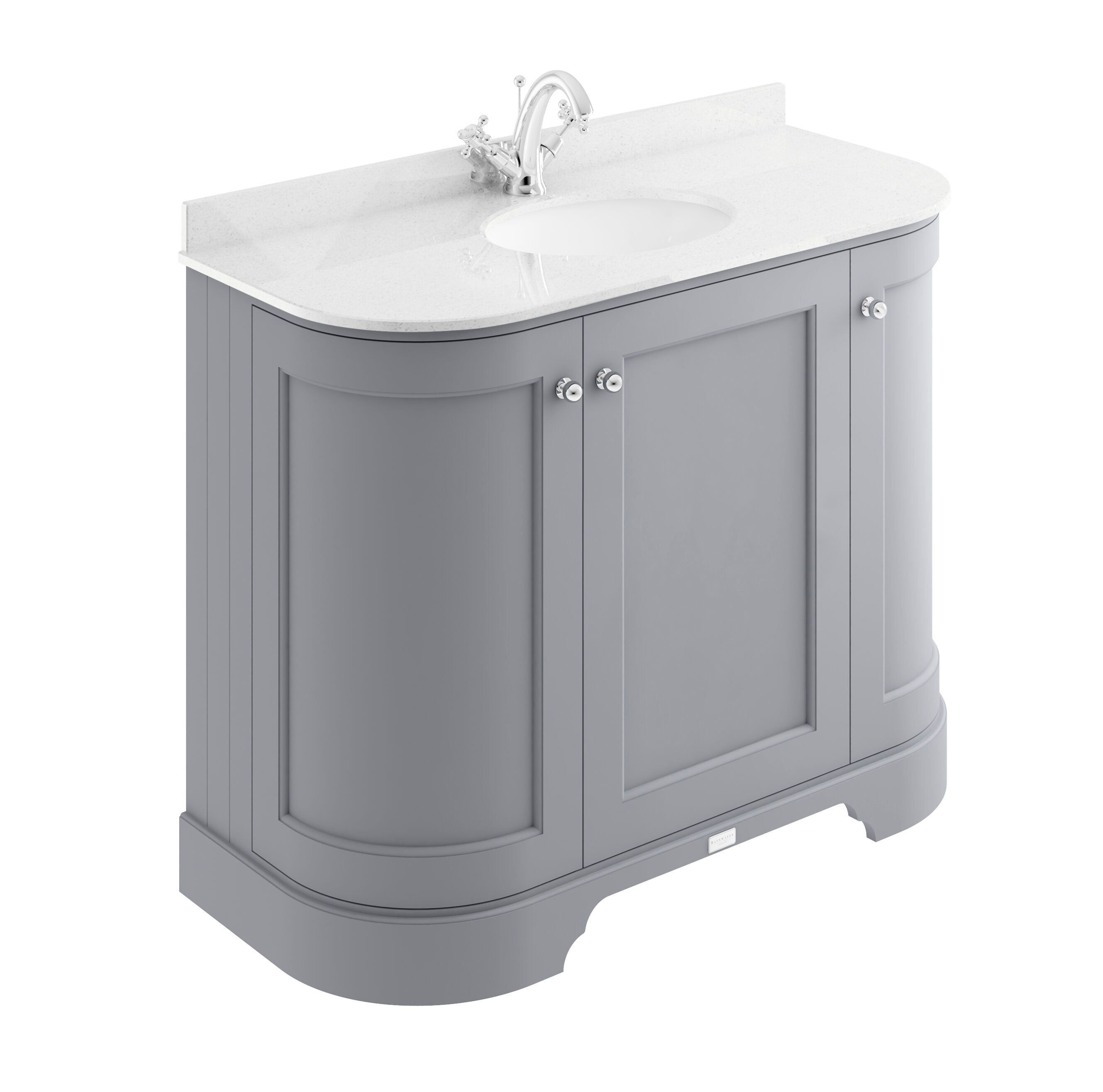 Bayswater 1000mm 3-Door Cab With 1 Tap Hole White Marble Top Basin - Plummett Grey