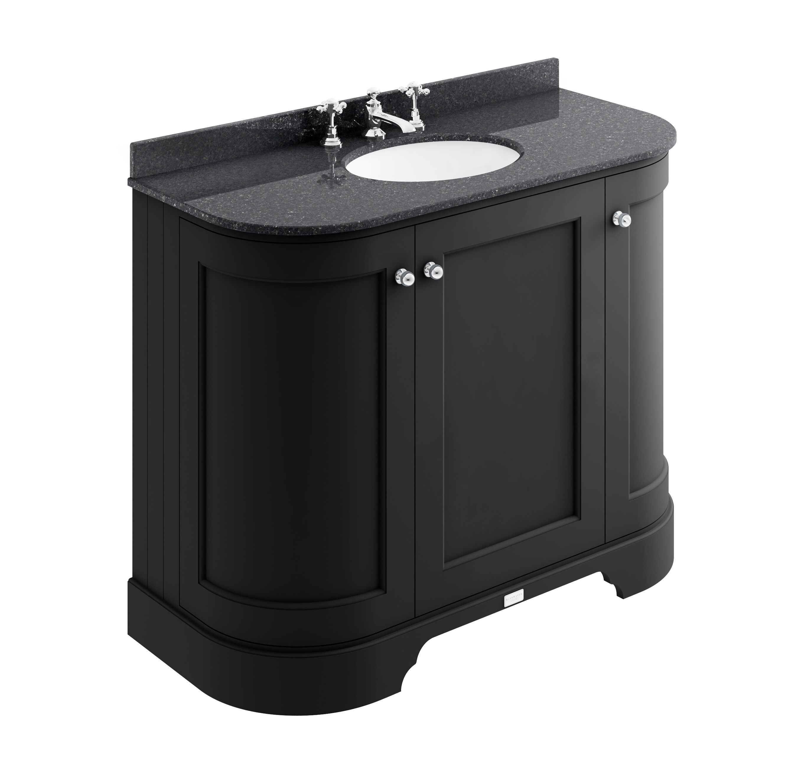 Bayswater 1000mm 3-Door Cab With 3 Tap Hole Black Marble Top Basin - Matt Black
