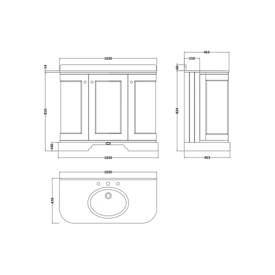 Supplied with a traditional and elegant Bayswater basin, predrilled with 3 tap holes
