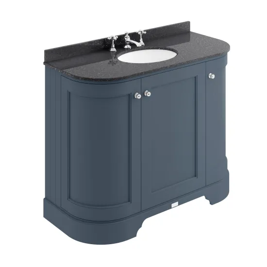 Bayswater 1000mm 3-Door Cab With 3 Tap Hole Black Marble Top Basin - Stiffkey Blue