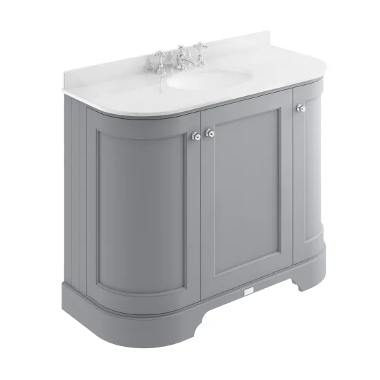 Bayswater 1000mm 3-Door Cab With 3 Tap Hole White Marble Top Basin - Plummett Grey