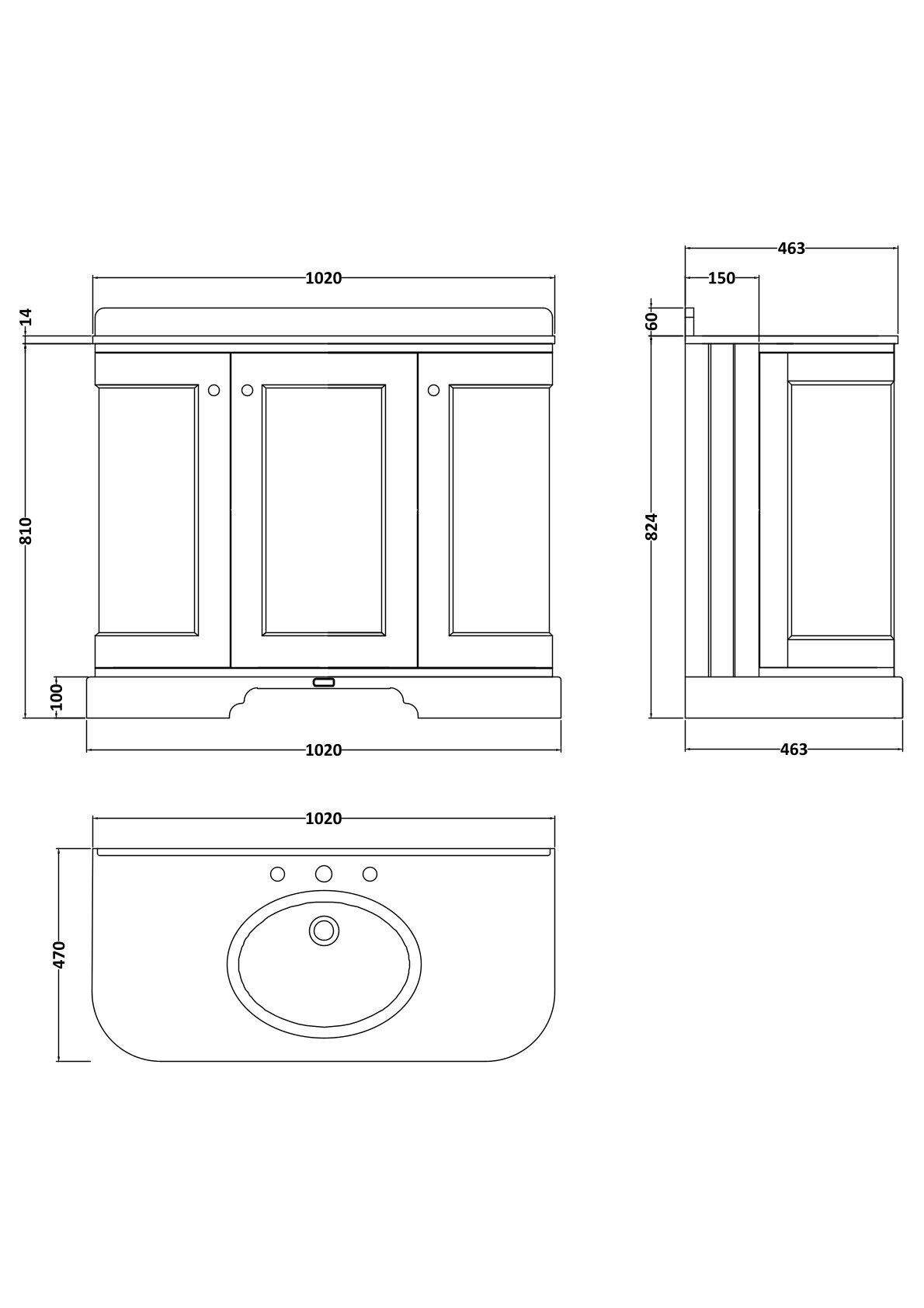 Supplied with a traditional and elegant Bayswater basin, predrilled with 3 tap holes