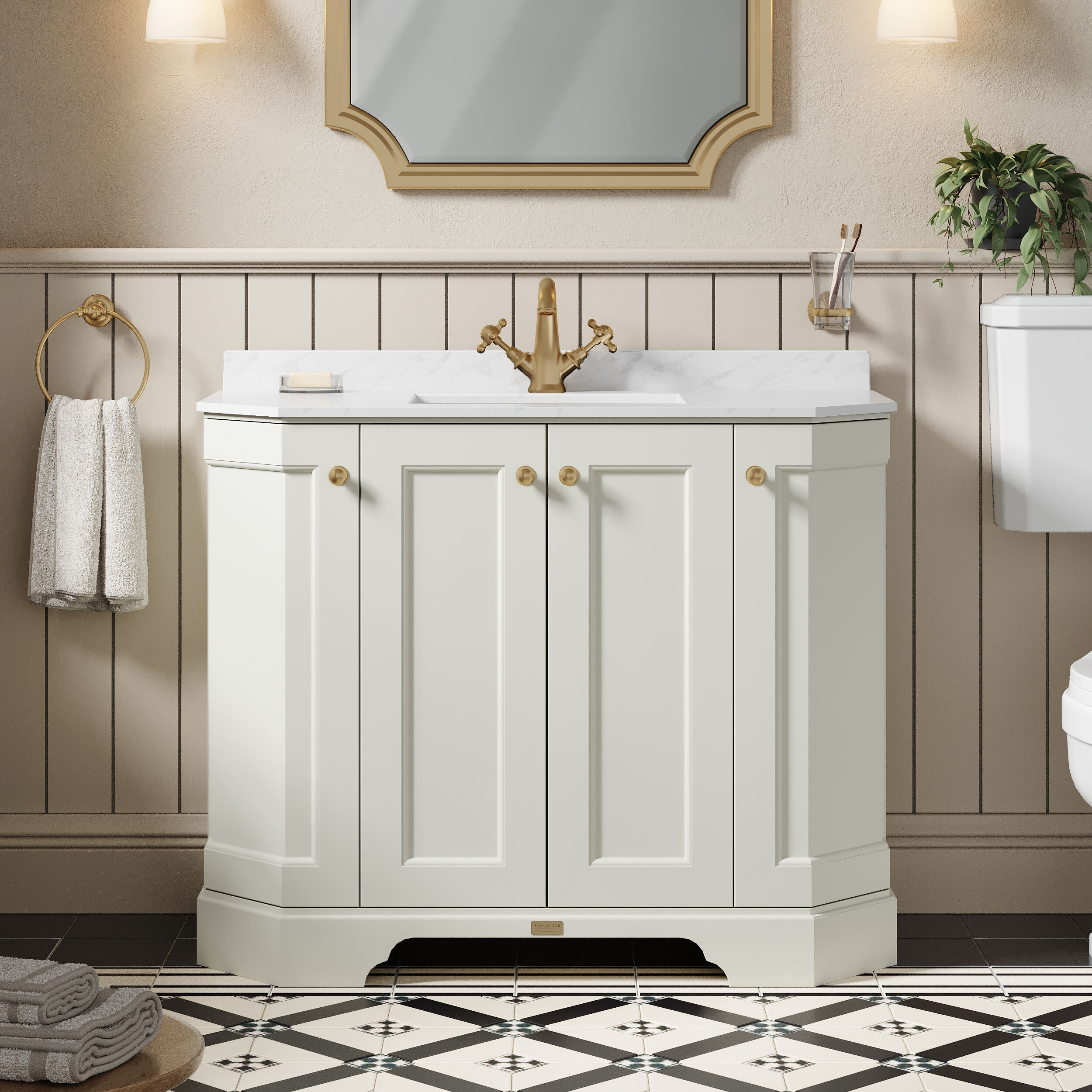 Bayswater 1000mm 4 Door Angled Cabinet with 1 Tap Hole Marble Top Basin