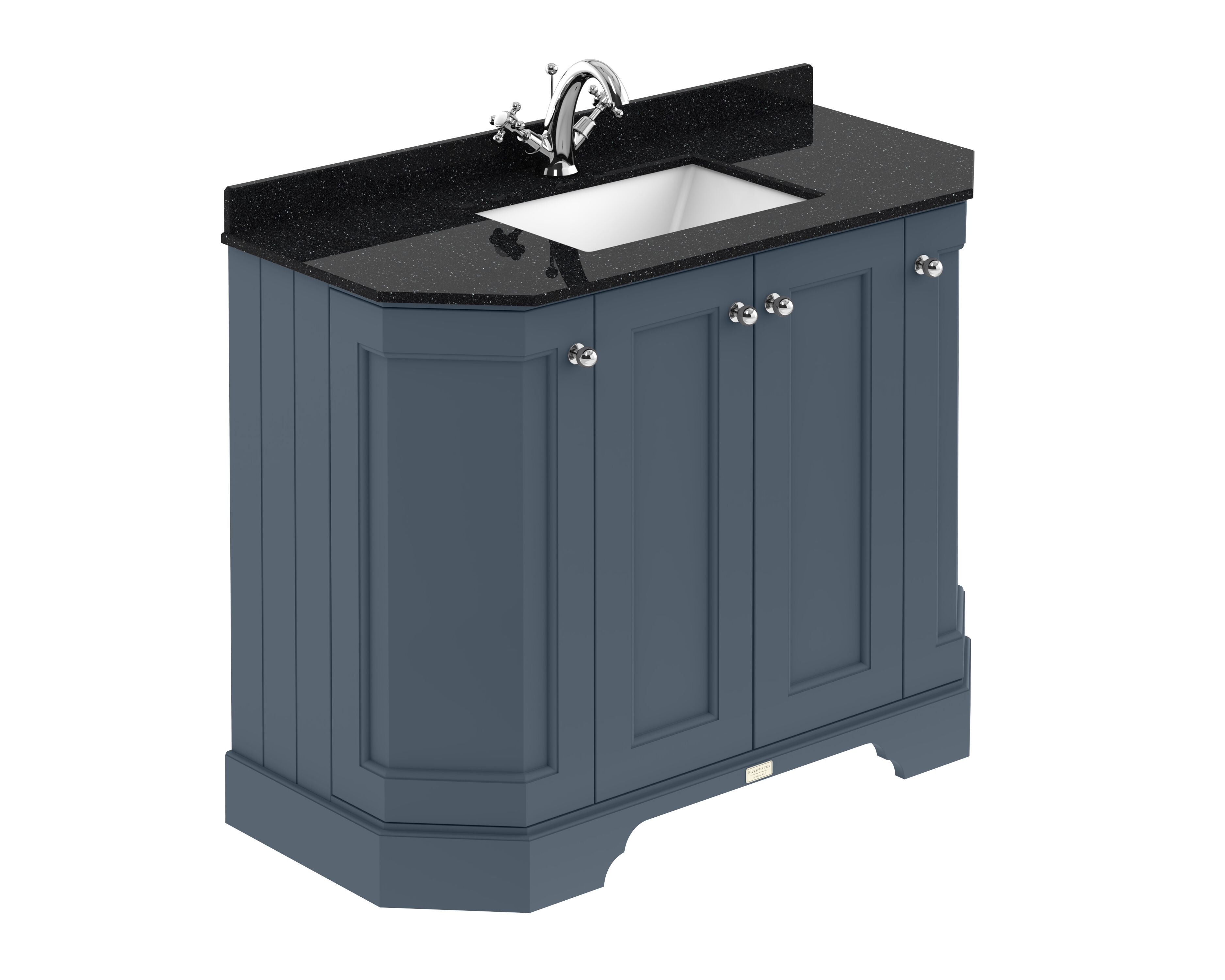 Bayswater 1000mm 4 Door Angled Cabinet With 1 Tap Hole Marble Top Basin - Stiffkey Blue