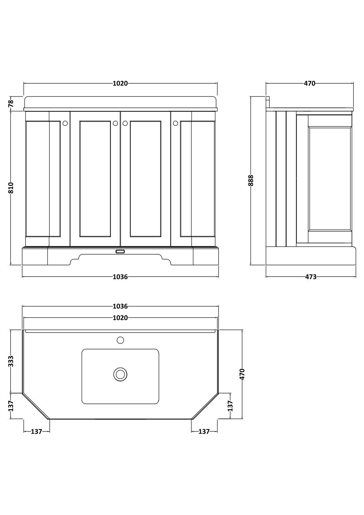 Bayswater 1000mm 4 Door Angled Cabinet with 1 Tap Hole Marble Top Basin
