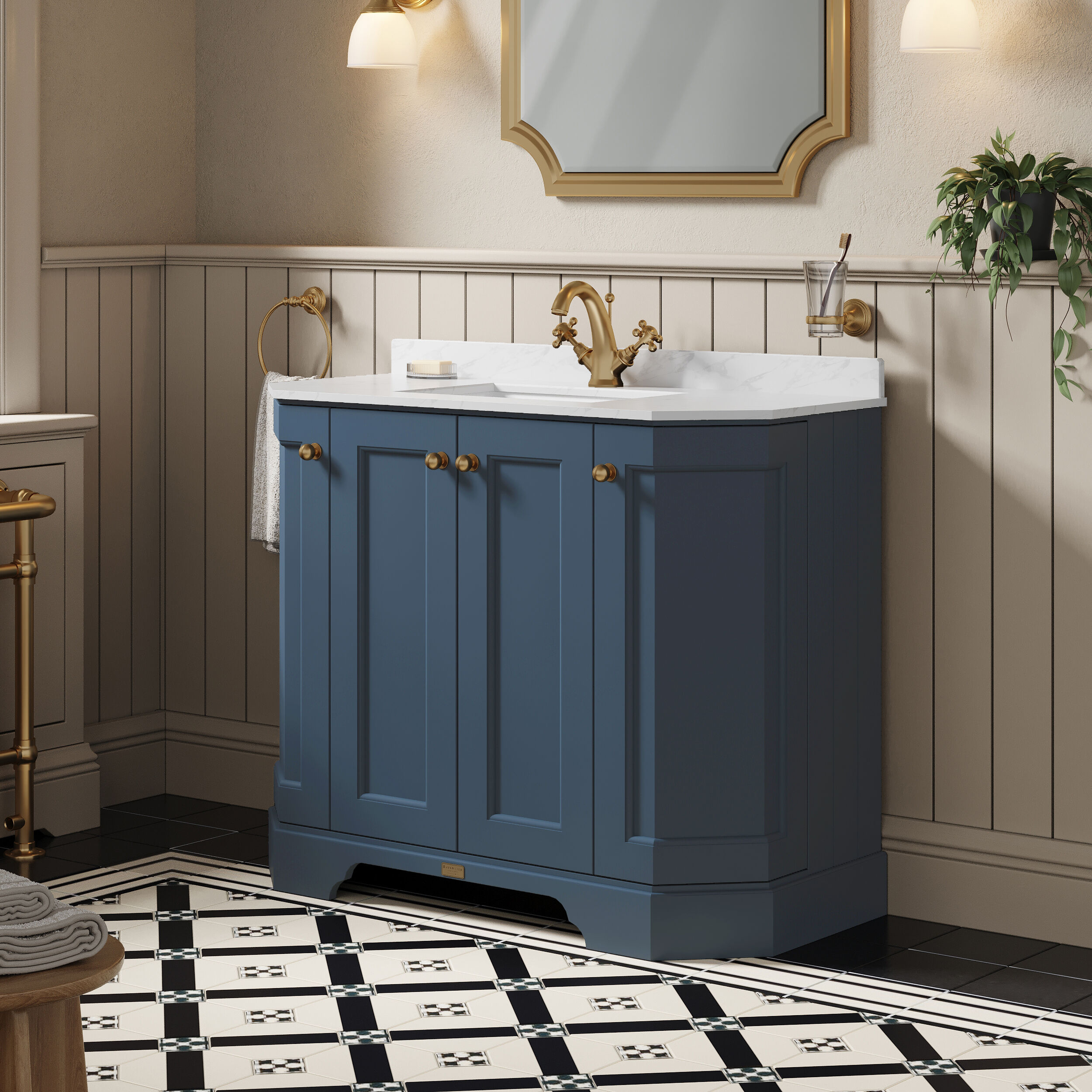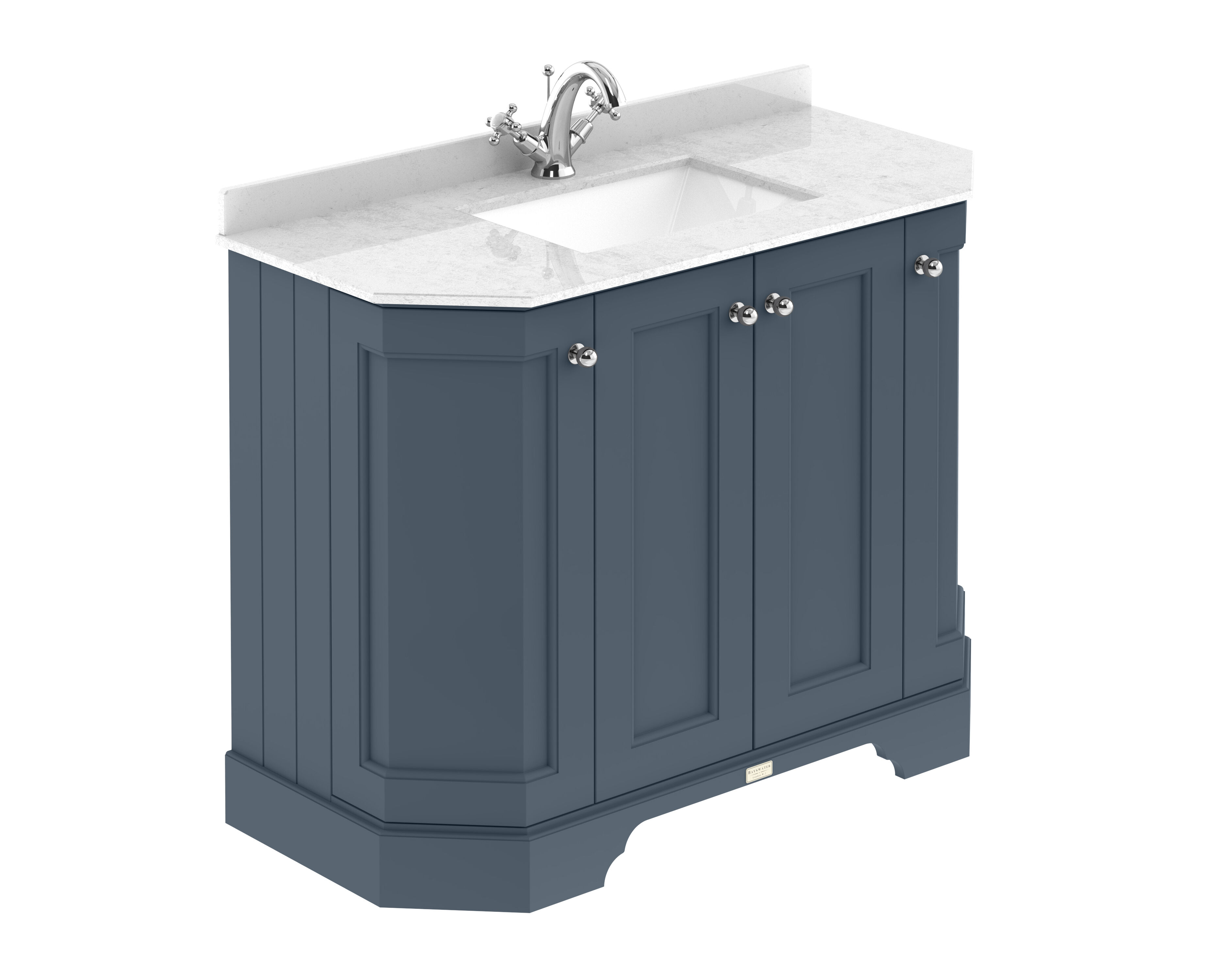 Bayswater 1000mm 4 Door Angled Cabinet With 1 Tap Hole Marble Top Basin - Stiffkey Blue