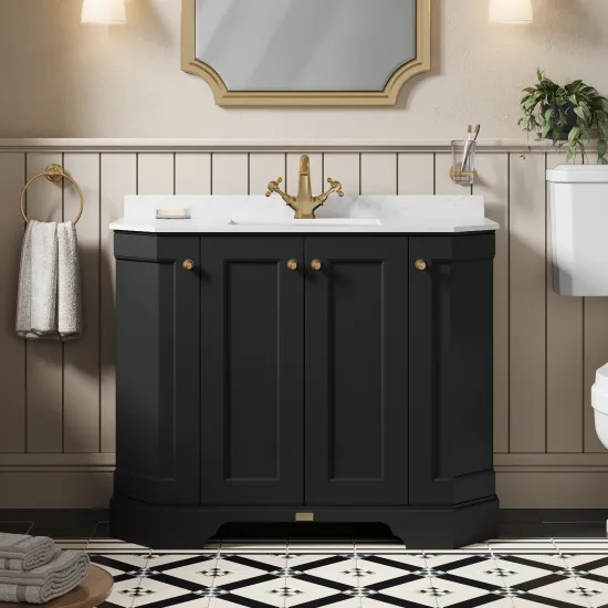 Bayswater 1000mm 4 Door Angled Cabinet With 1 Tap Hole Marble Top Basin - Matt Black