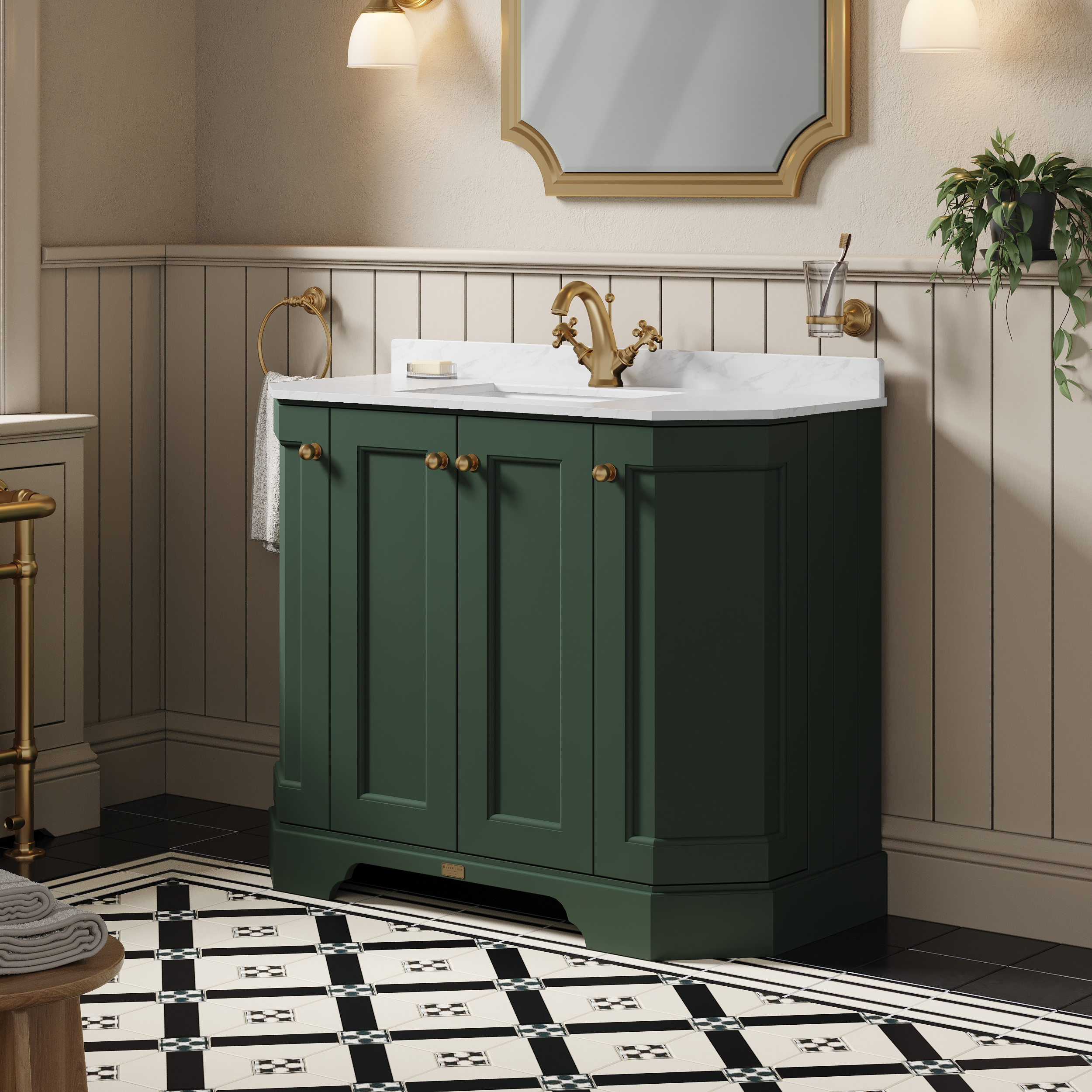 Bayswater 1000mm 4 Door Angled Cabinet With 1 Tap Hole Marble Top Basin - Hunter Green