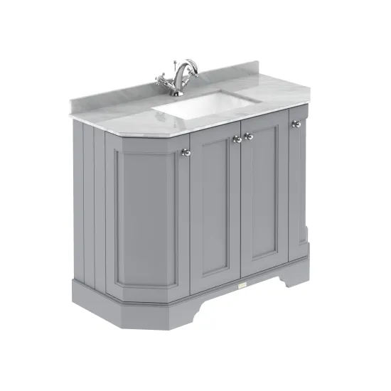 Bayswater 1000mm 4 Door Angled Cabinet With 1 Tap Hole Marble Top Basin - Plummett Grey