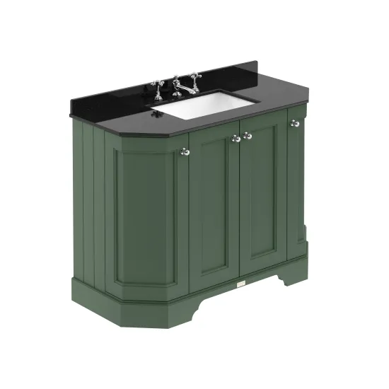 Bayswater 1000mm 4-Door Angled Cab With 3 Tap Hole Black Marble Top Basin - Hunter Green