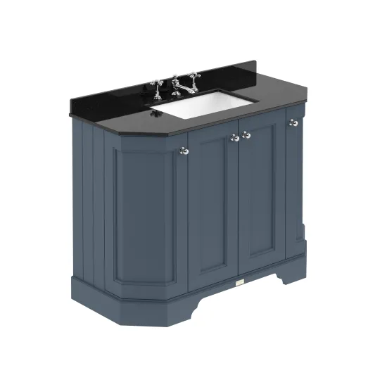 Bayswater 1000mm 4-Door Angled Cab With 3 Tap Hole Black Marble Top Basin - Stiffkey Blue