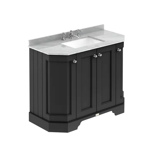 Bayswater 1000mm 4-Door Angled Cab With 3 Tap Hole Grey Marble Top Basin - Matt Black