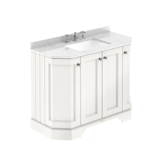Bayswater 1000mm 4-Door Angled Cabinet with 3 Tap Hole White Marble Top Basin