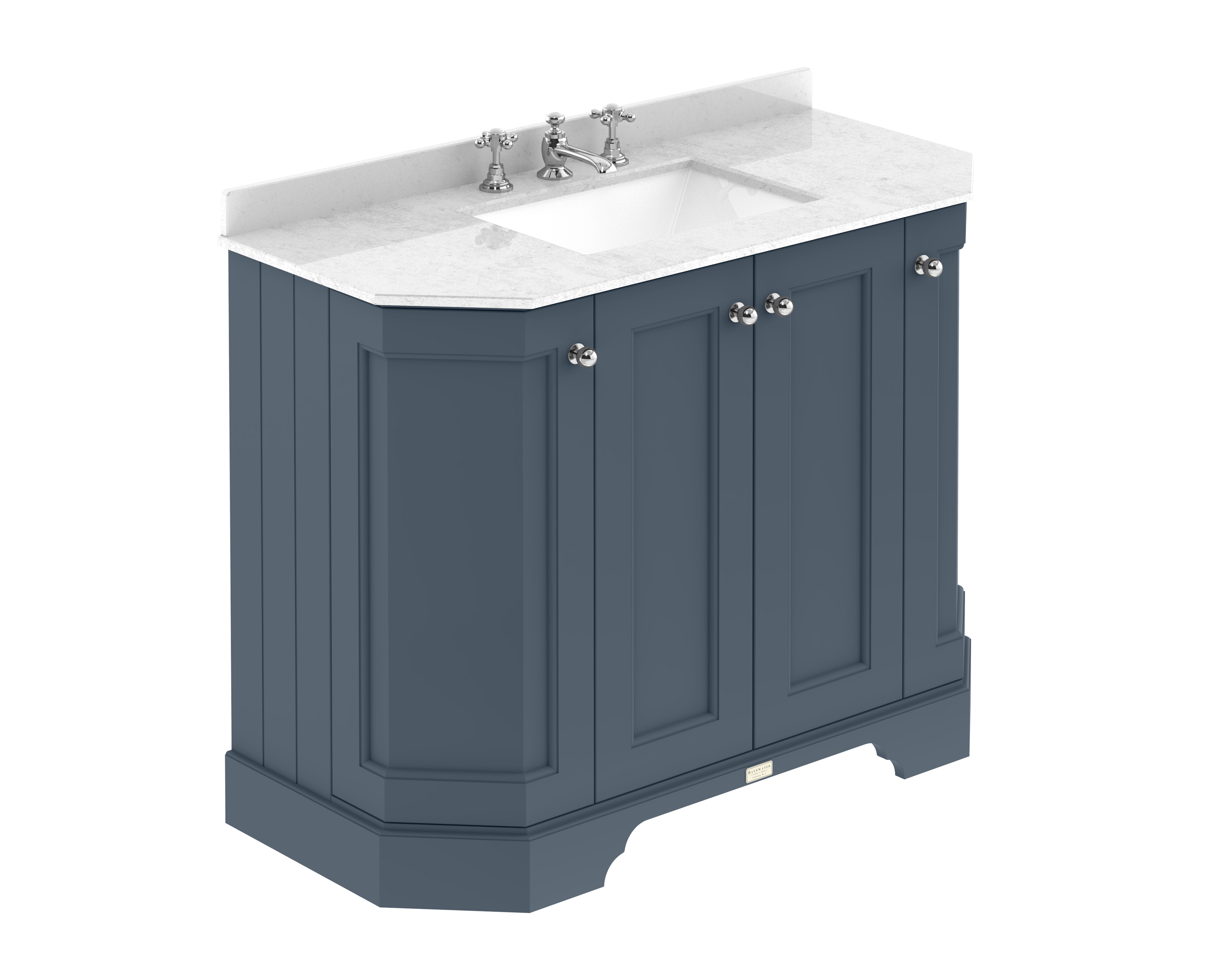 Bayswater 1000mm 4-Door Angled Cab With 3 Tap Hole White Marble Top Basin - Stiffkey Blue