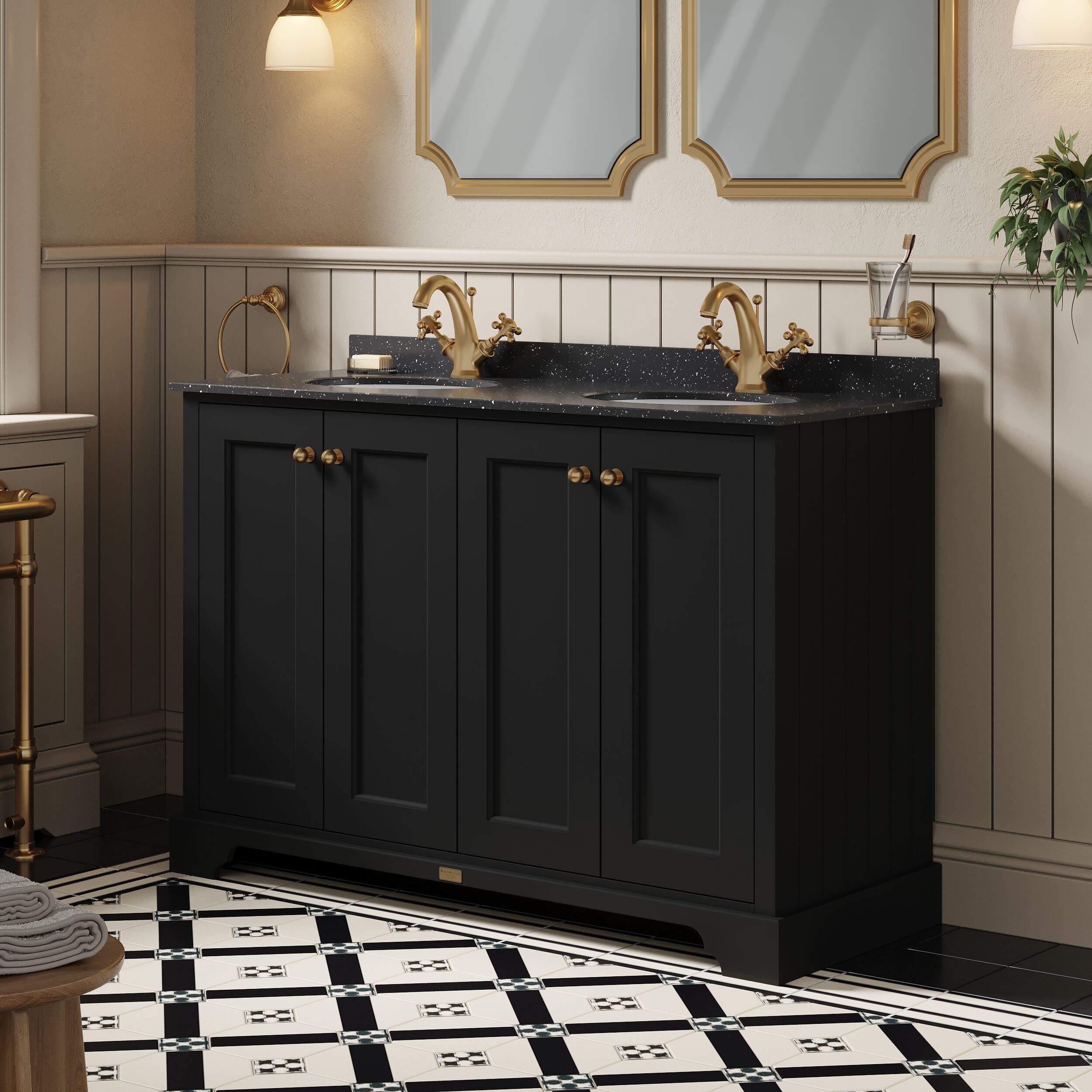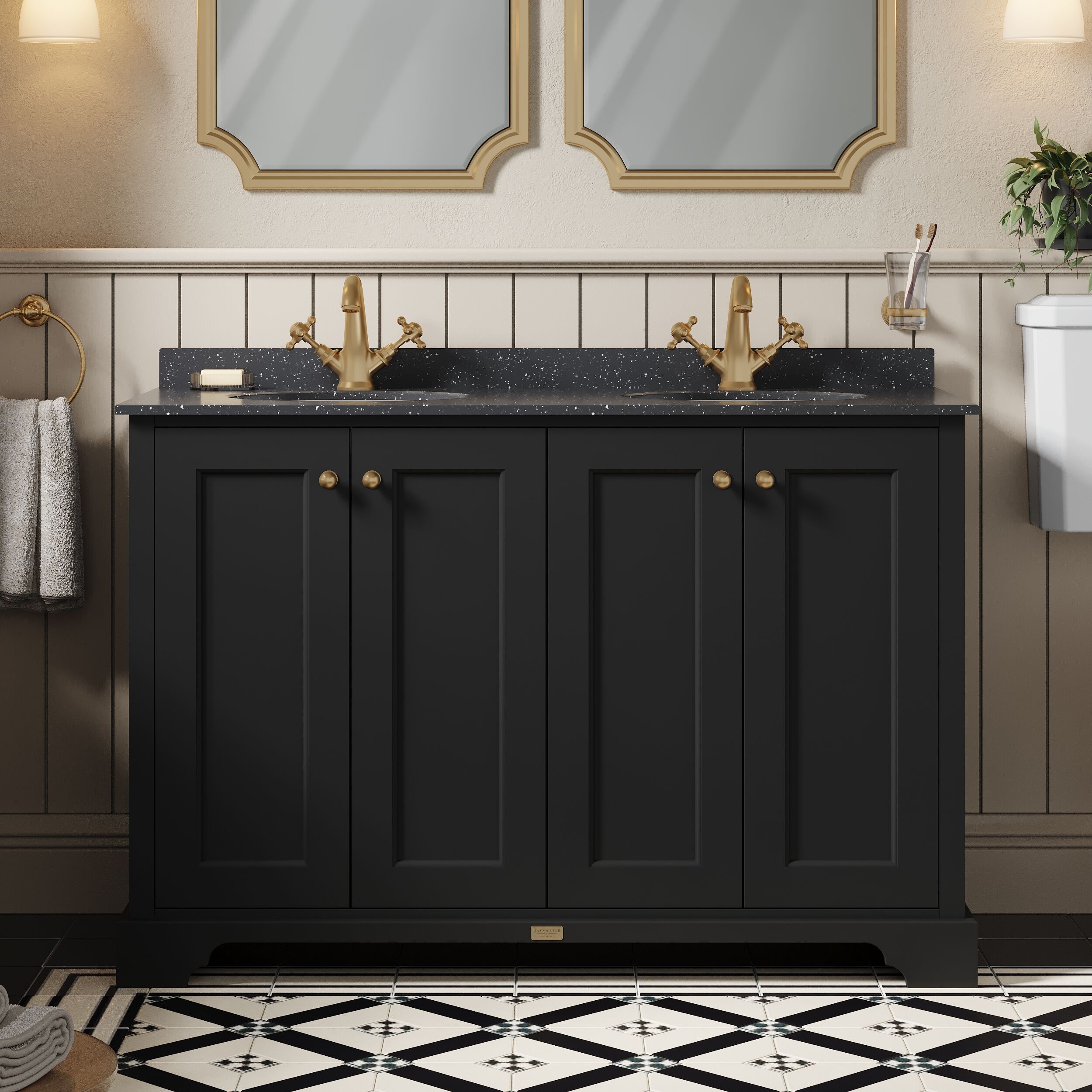 Bayswater 1200mm 4-Door Cabinet with 1 Tap Hole Black Marble Top Basin