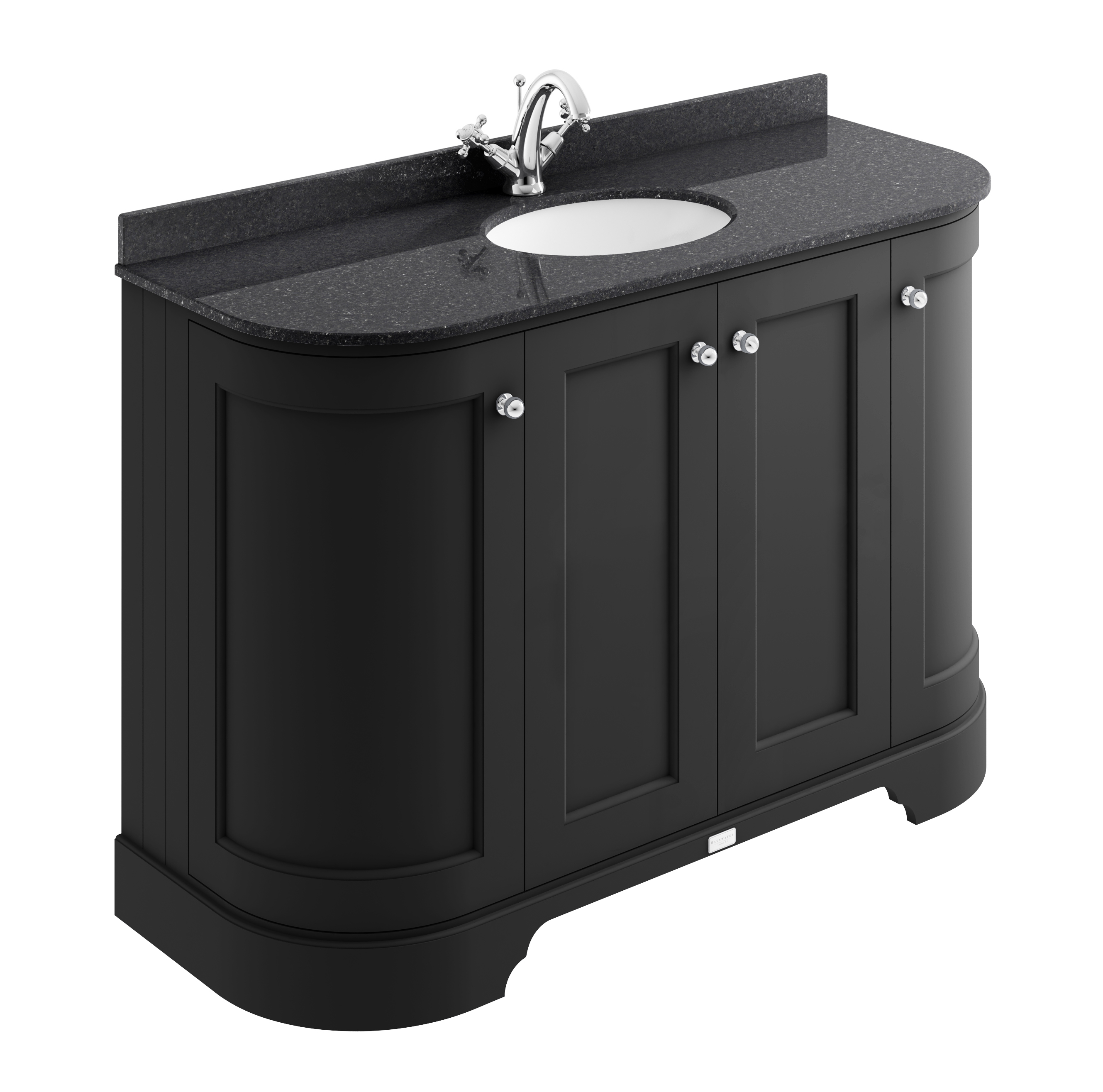Bayswater 1200mm 4-Door Cab With 1 Tap Hole Black Marble Top Basin - Matt Black