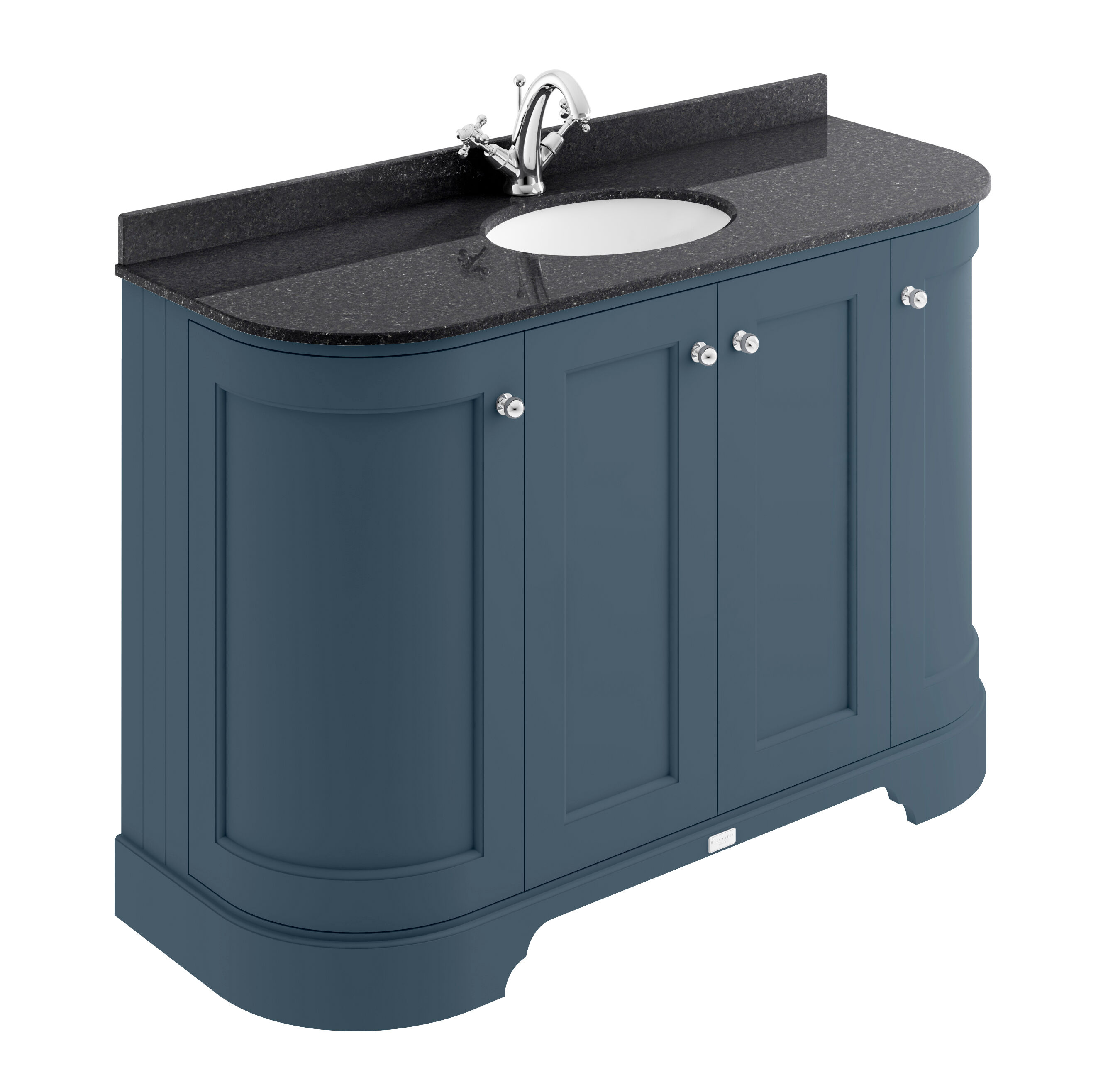 Bayswater 1200mm 4-Door Cab With 1 Tap Hole Black Marble Top Basin - Stiffkey Blue