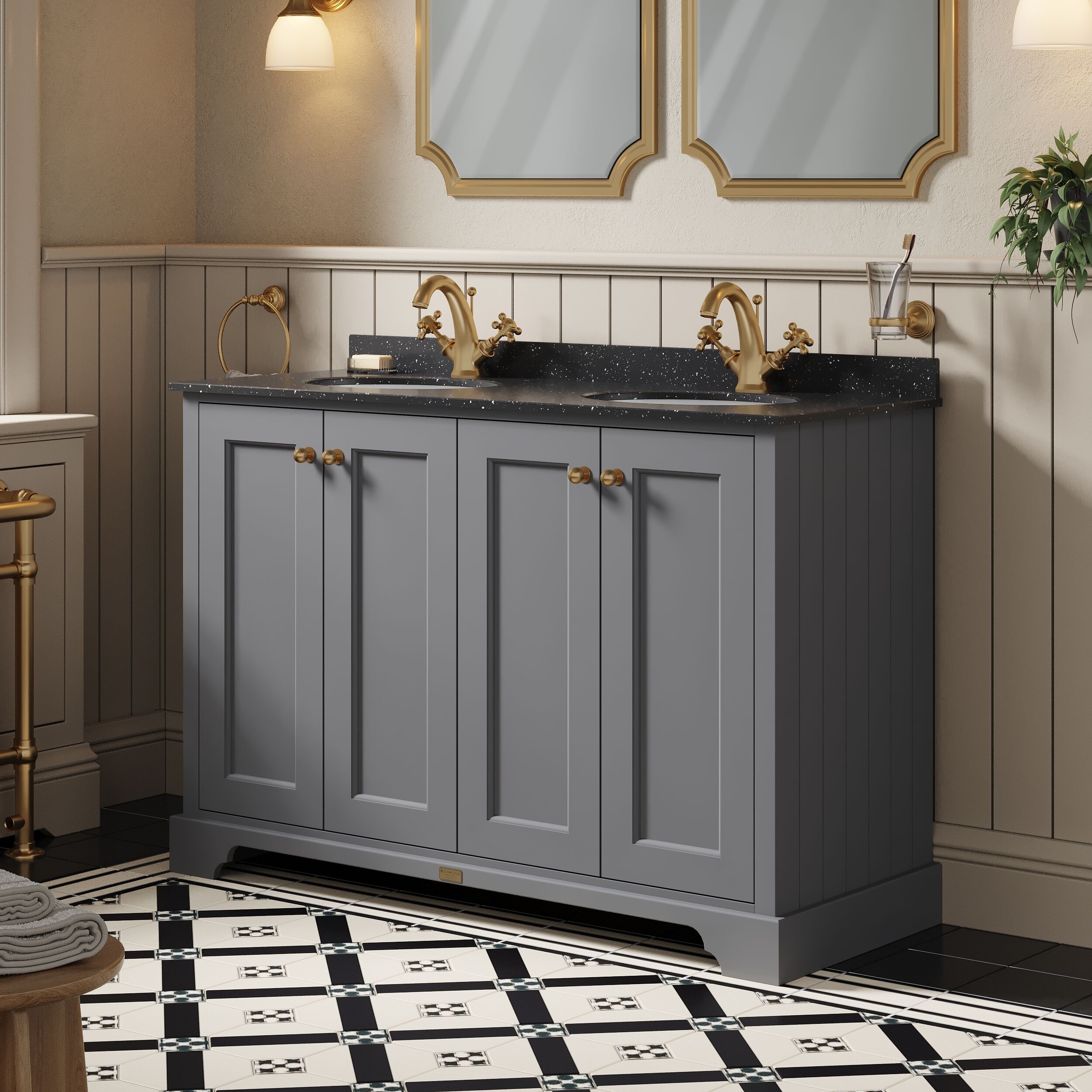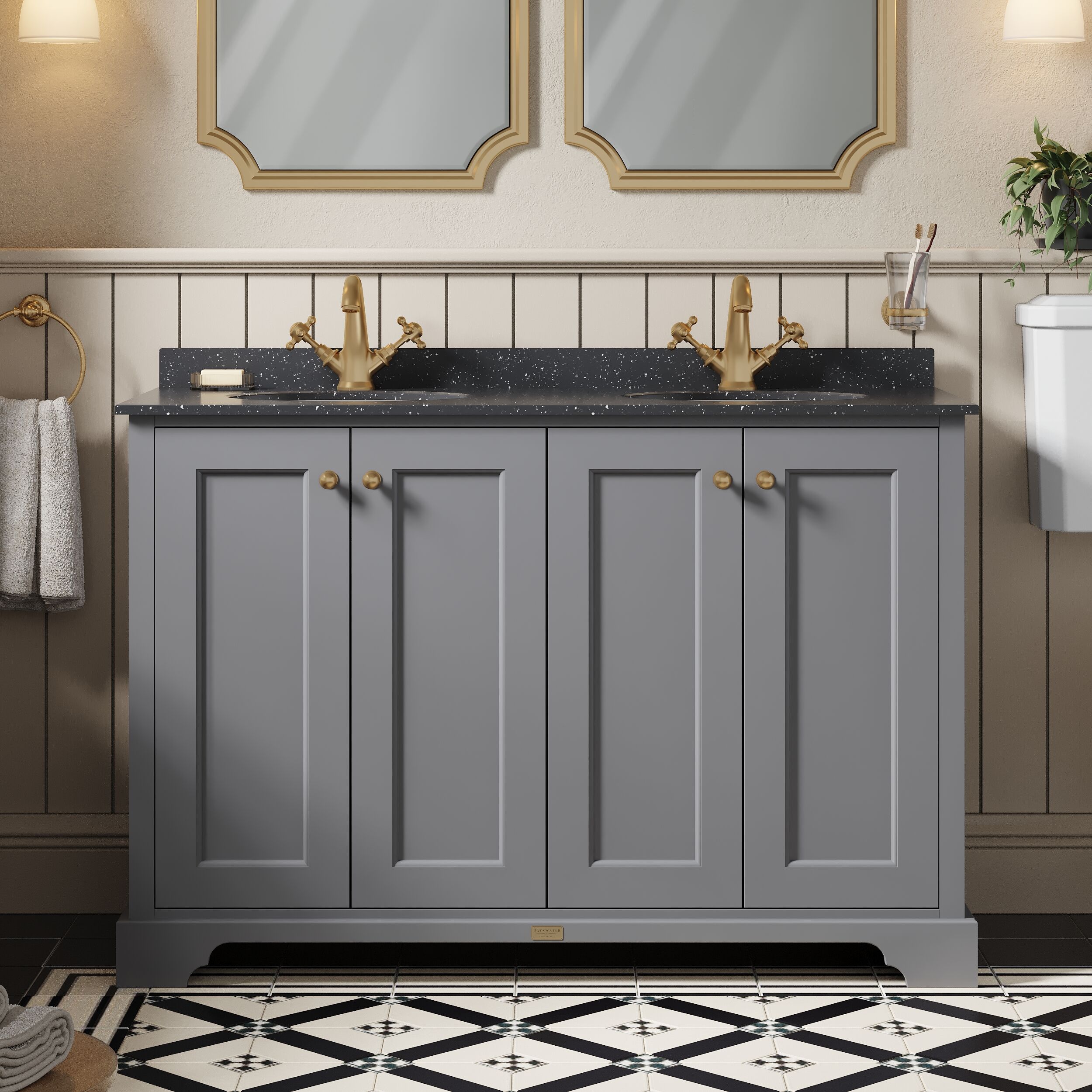 Bayswater 1200mm 4-Door Cabinet With 1 Tap Hole Black Marble Top Basin - Plummett Grey