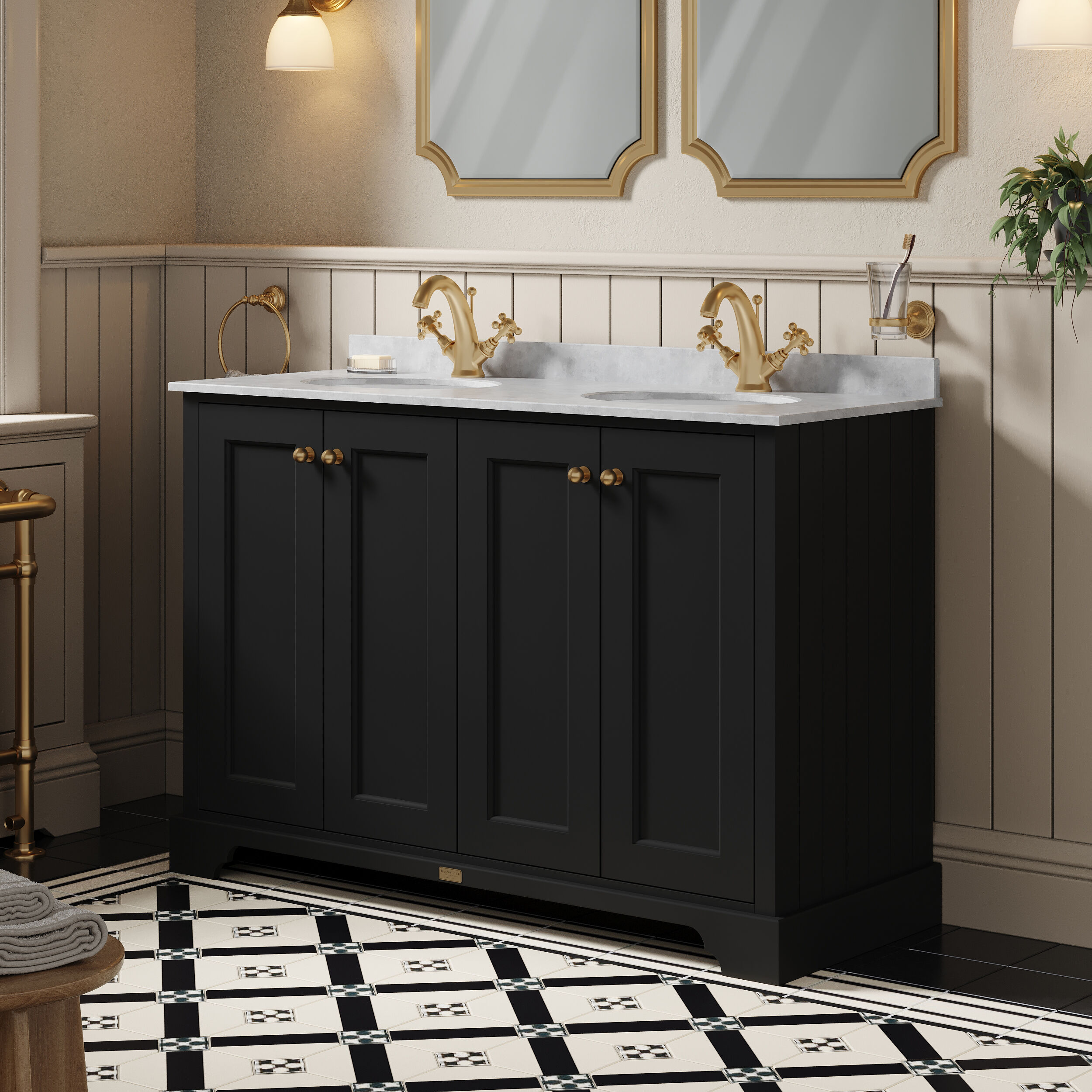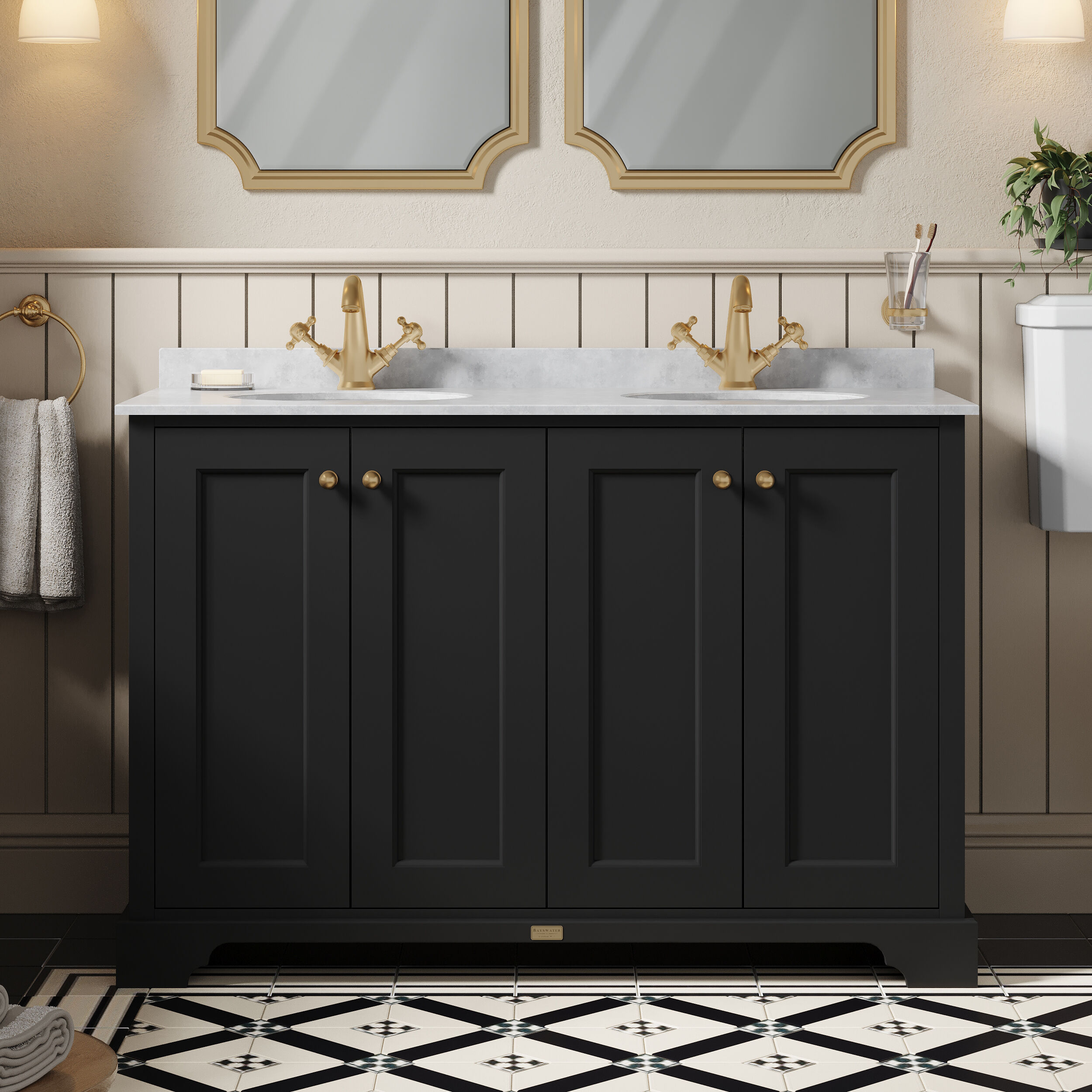 Bayswater 1200mm 4-Door Cabinet With 1 Tap Hole Grey Marble Top Basin - Matt Black