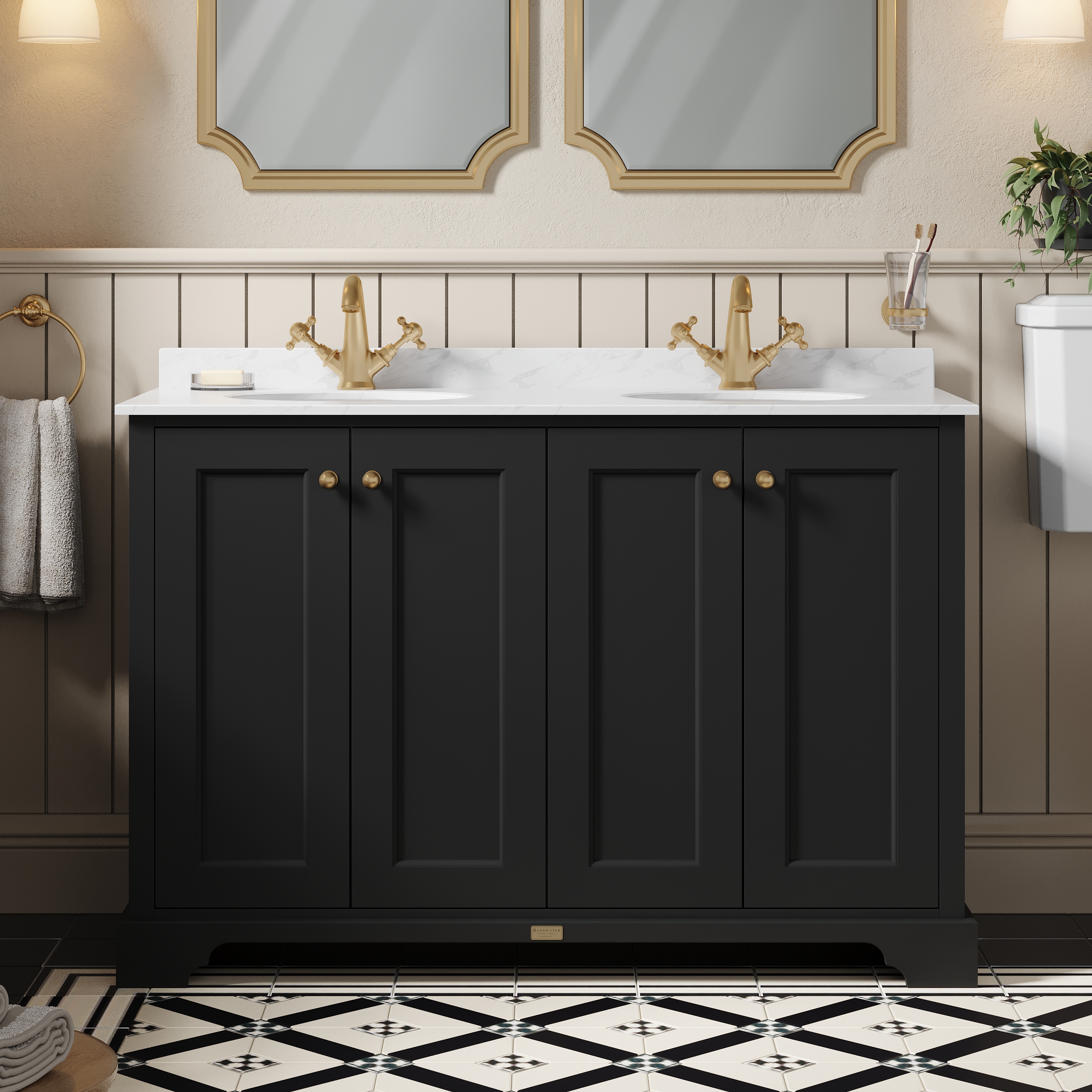 Bayswater 1200mm 4-Door Cabinet With 1 Tap Hole White Marble Top Basin - Matt Black
