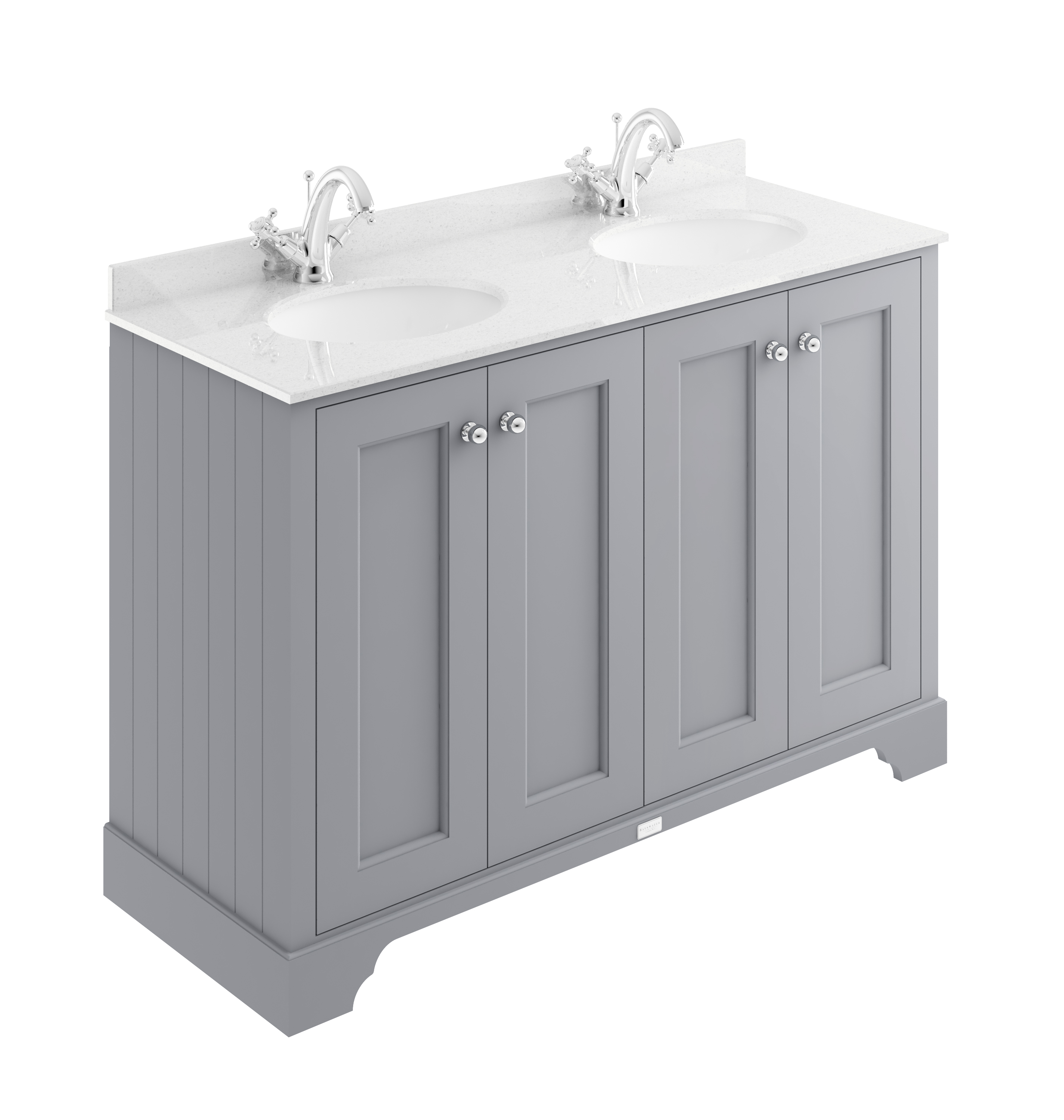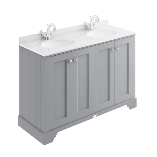 Bayswater 1200mm 4-Door Cabinet With 1 Tap Hole White Marble Top Basin - Plummett Grey