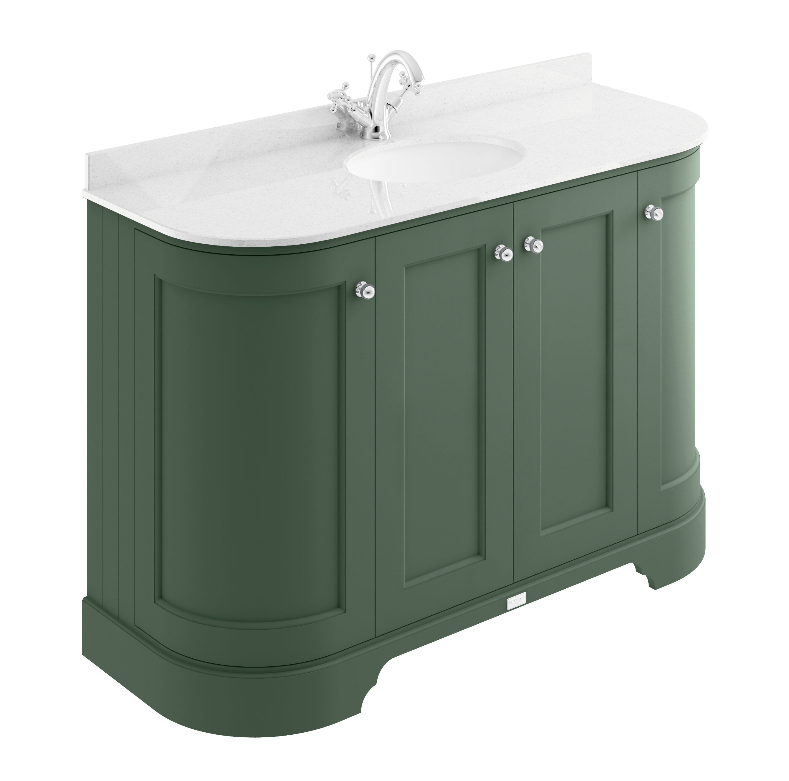 Bayswater 1200mm 4-Door Cab With 1 Tap Hole White Marble Top Basin - Hunter Green