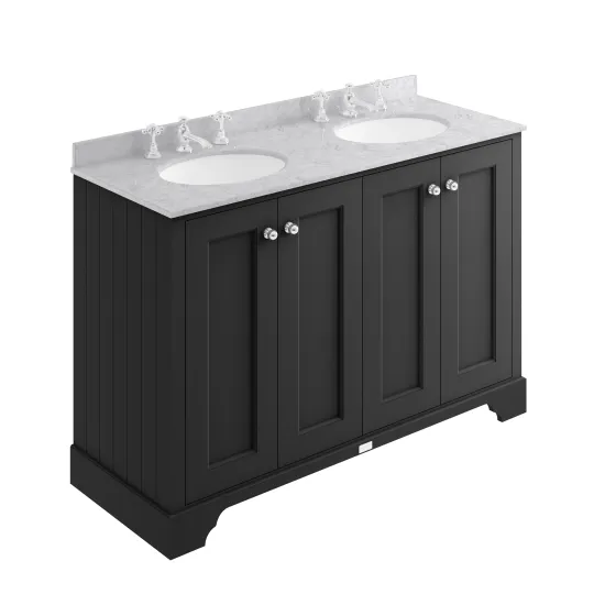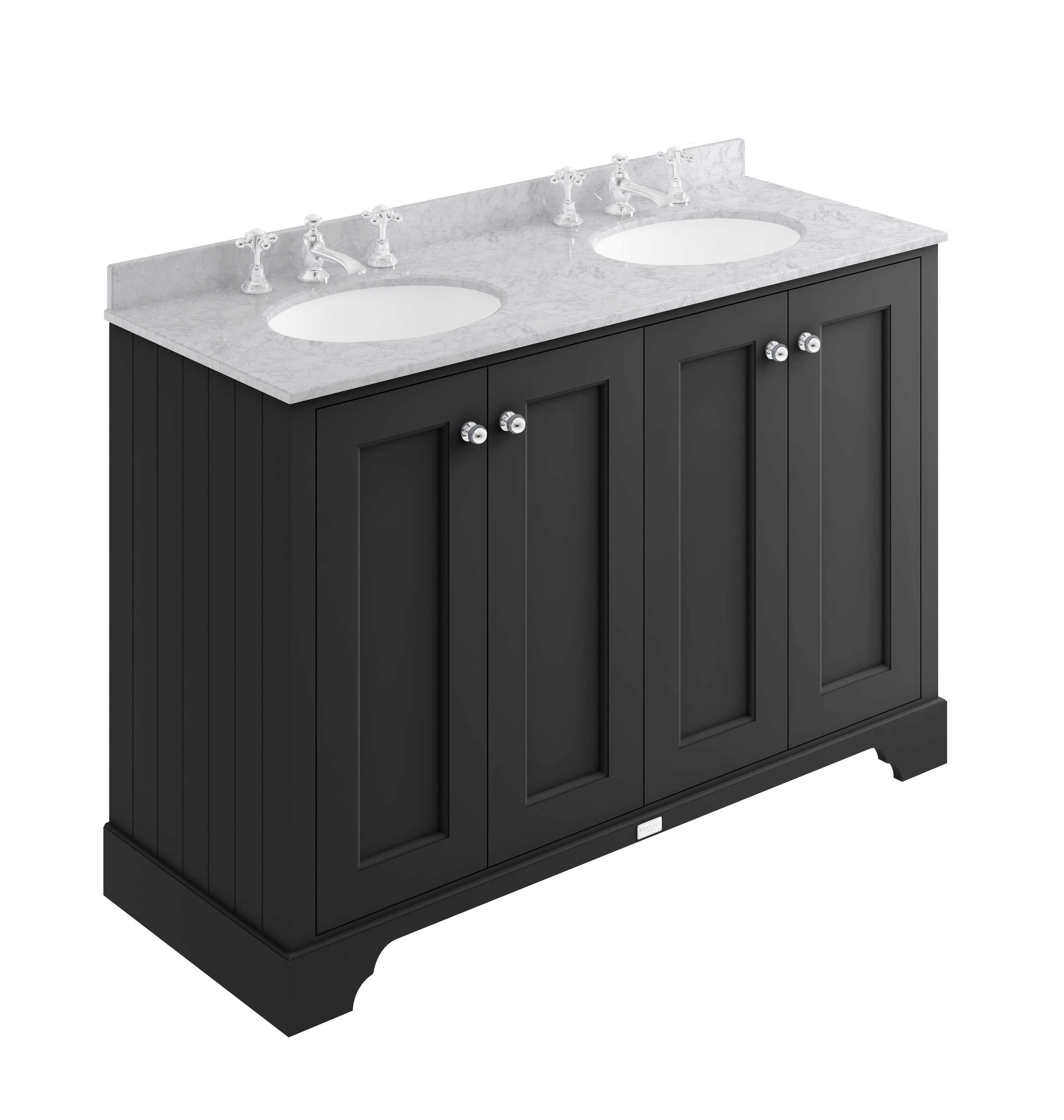 Bayswater 1200mm 4-Door Cab With 3 Tap Hole Grey Marble Top Basin - Matt Black